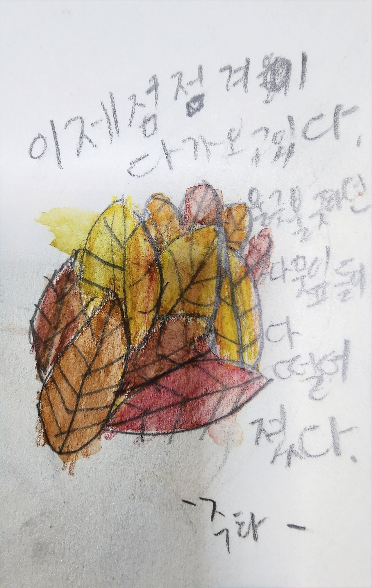 십 년 전 아이들과 함께 그린 절기 달력에 상강을 '우리도 물들 준비를 할 때'라고 써 놓았는데요, 이제 저는 어떤 색으로 물들어 가야 할까요? 가을 텃밭에서 저는 어떤 작물처럼 살고 있는 걸까요? 서리가 내리고 찬바람이 불고, 마침내 작물을 다 거두어들인 빈 겨울 텃밭이 되면 저는 어떤 마음으로 그 밭을 바라보게 될까요? 내게 주어진 한 생을 때에 맞춰 잘 살았다, 누군가의 밥상을 채워주는 수확을 잘 거두었다, 그렇게 살려면 오늘 이 하루는 어떻게 살아야 했을까요?