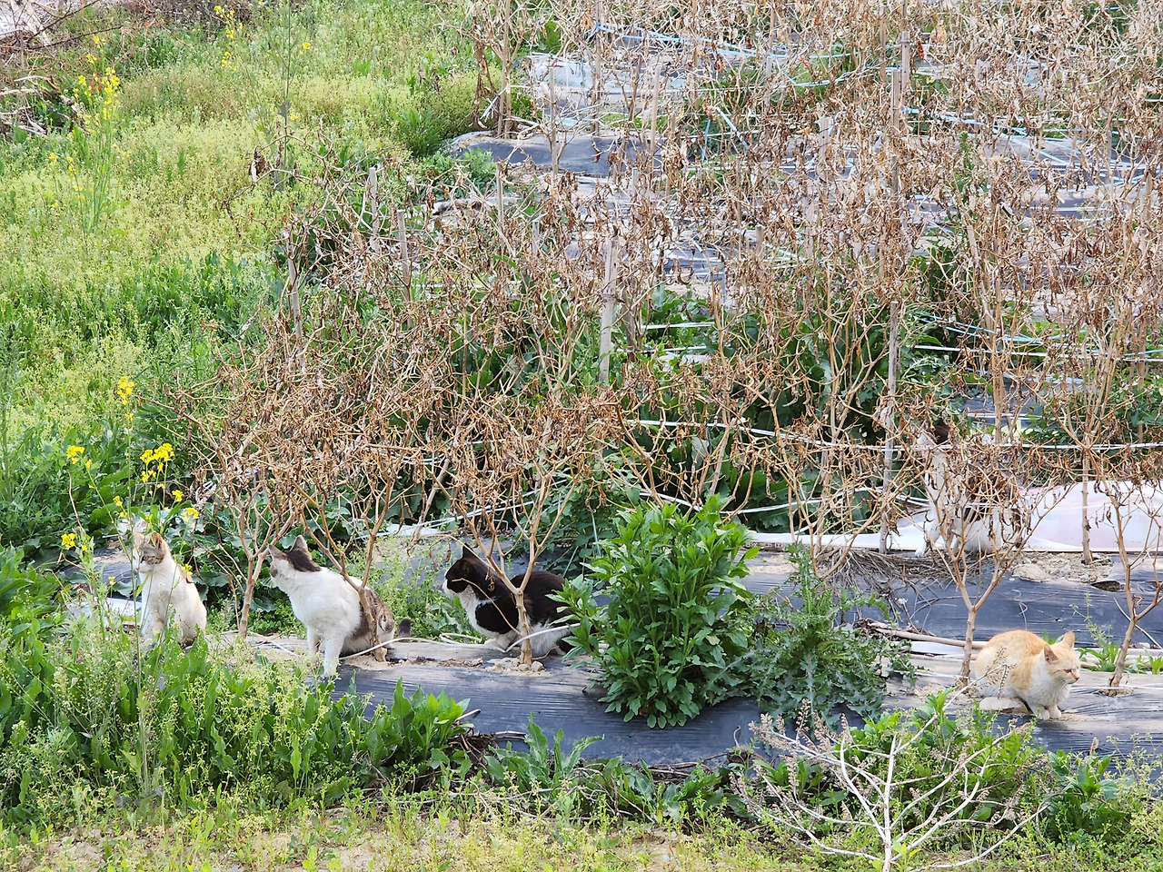 고양이와 아이들의 비슷한 점은 또 있다. 자기가 하고 싶은 대로 하고, 자기가 놀고 싶은 곳에서 노는 것을 더 좋아한다는 거다. 맛있는 츄르를 들고 꼬드겨도 밭에서 나오지 않고 뛰어다니는 냥이들이나, 다른 놀이 하자고 불러도 마른 갈대밭을 헤치고 다니면서 자기들끼리 몰려다니는 아이들이나.