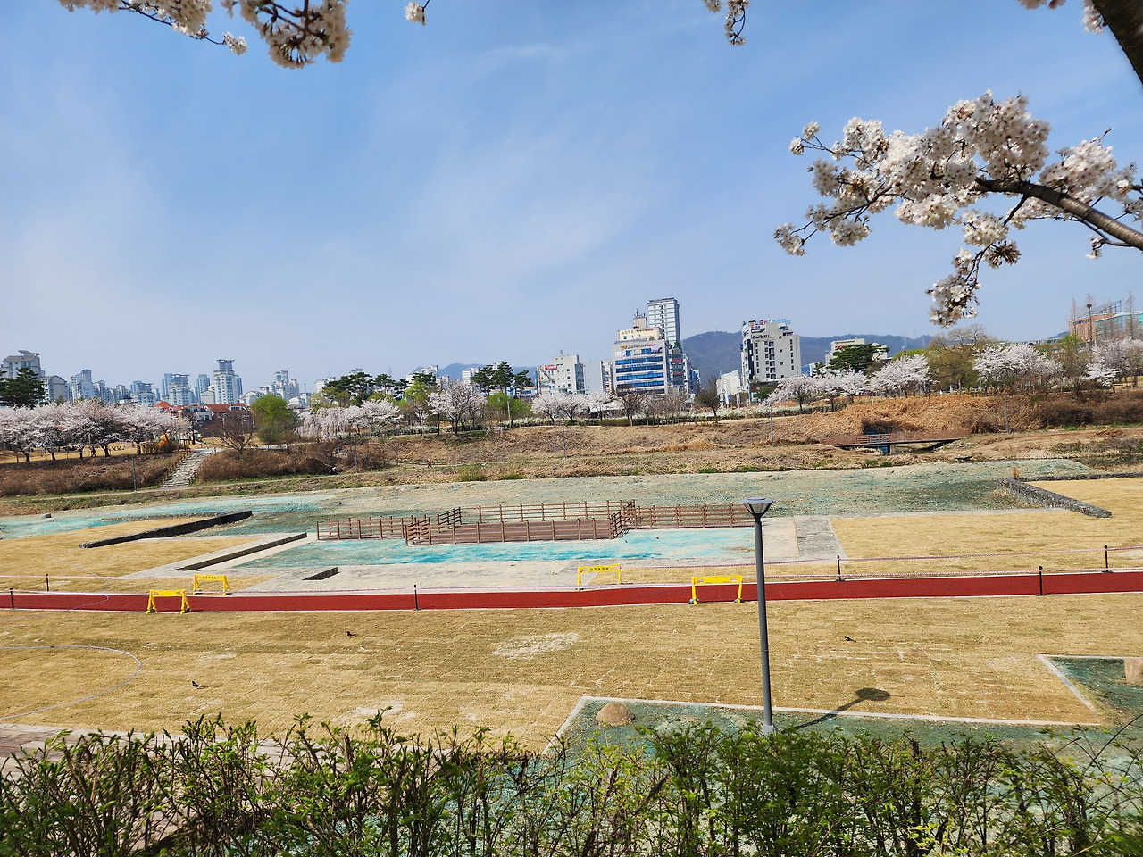 돗자리를 펴고 싸가지고 간 김밥과 과일을 먹었다. 그러고도 한참을 더 놀고, "이제 가자!"라고 했더니 아이들은 "상어 잡기 딱 한 번만요!"라며 다시 놀이터로 달려간다. 가방을 메고 아이들을 기다린다.