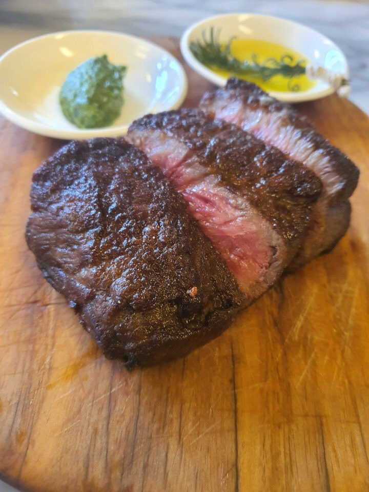 그제야 주위를 둘러보니 커플을 제외한 식당 안 손님의 80프로는 내 또래 거나 나보다 조금 더 나이가 있는 여자 손님들이었는데 그중 아이와 함께 온 사람은 나밖에 없었다. 그도 그럴 것이 점심 3시간, 저녁 3시간만 딱 운영하는 이 레스토랑은 의자도 테이블도 딱딱하고, 음식의 양에 비해 가격도 다소 딱딱하기 때문에 아이와는 멀리 떨어져서 혼자 힐링하면서 식사를 해야 할 것만 같은 분위기였다.
