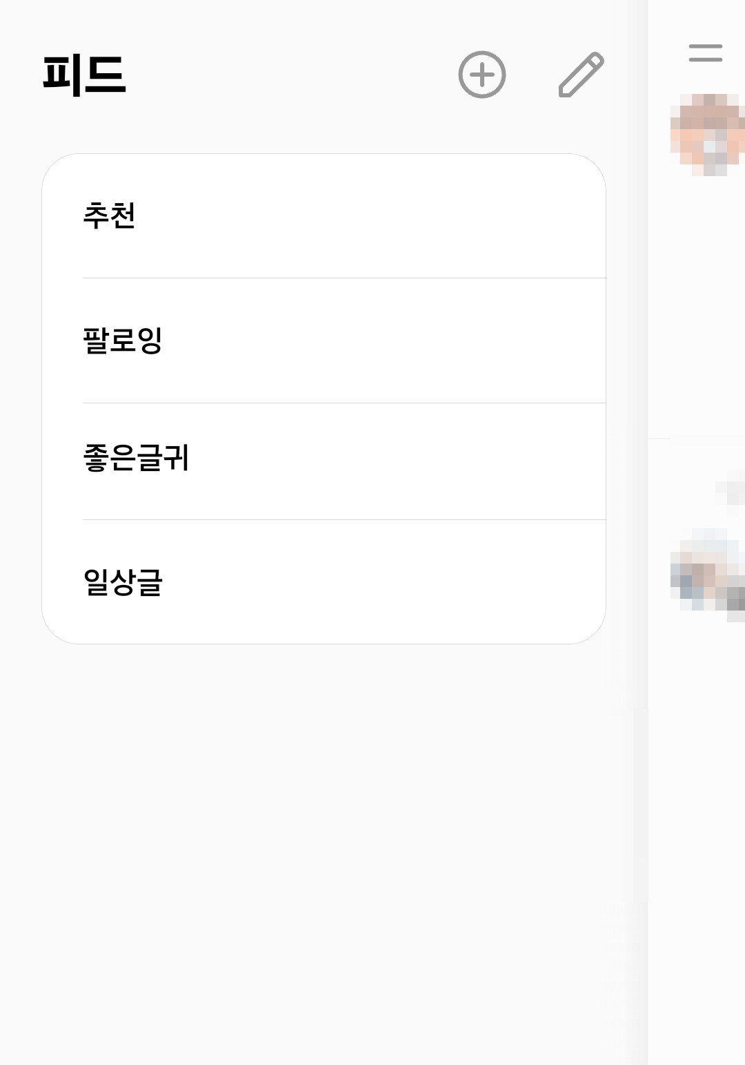 피드를 내 관심사에 맞춰 활용할 수도 있다. 홈에서 왼쪽 상단에 있는 두줄 아이콘을 누르면 편집창이 뜬다. 관심사를 입력하고 만들어진 키워드를 누르면 그에 해당되는 내용을 볼 수 있다. 좋은 글귀를 보면 마음이 편안해진다.