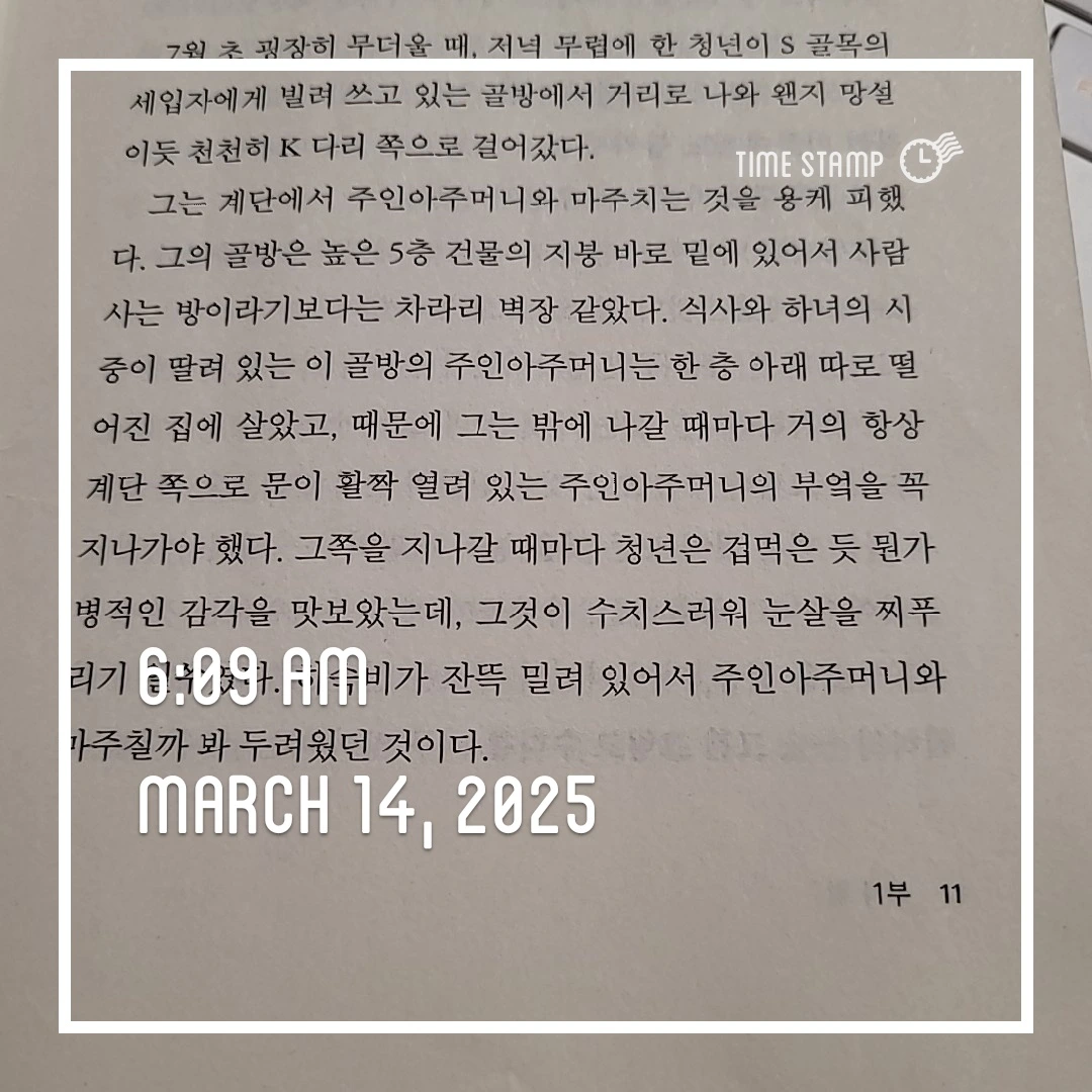 주인아주머니와 마주칠까 봐 두려웠던 것이다.