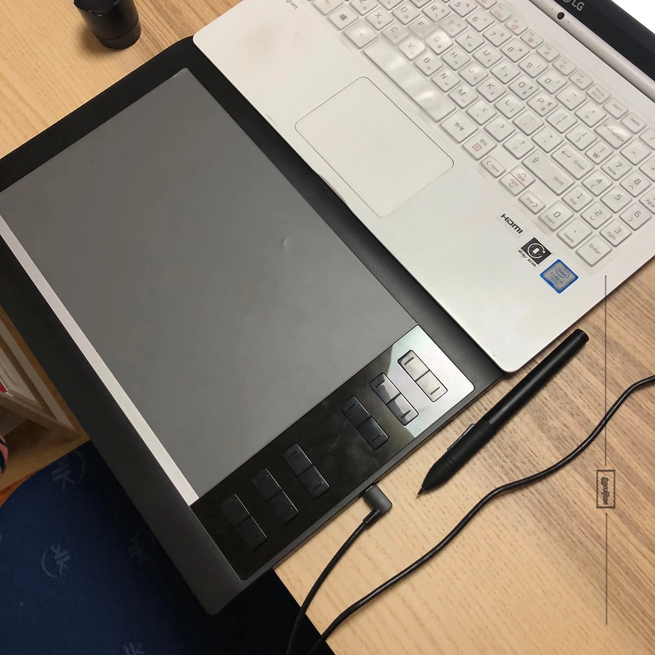 컴퓨터와 관련된 장비는 모두 얻었다. 캘리그래피를 하려니 기계가 필요해서 아주 싼 중국 제 태블릿을 구매했다. 다만 포토샵과 호환이 안 돼서 문제. (그럼 얘는 왜 필요한 거죠? 다음 목표는 아이패드!)