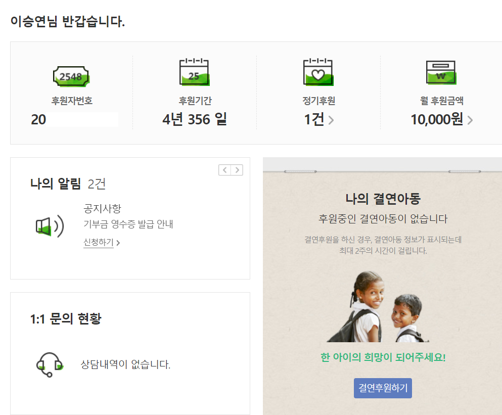 정기 후원금 1만 원. 스타벅스 음료 2잔과 딱 비슷했다.