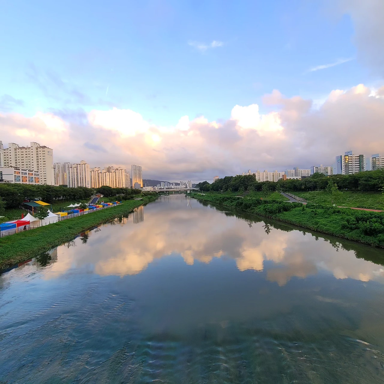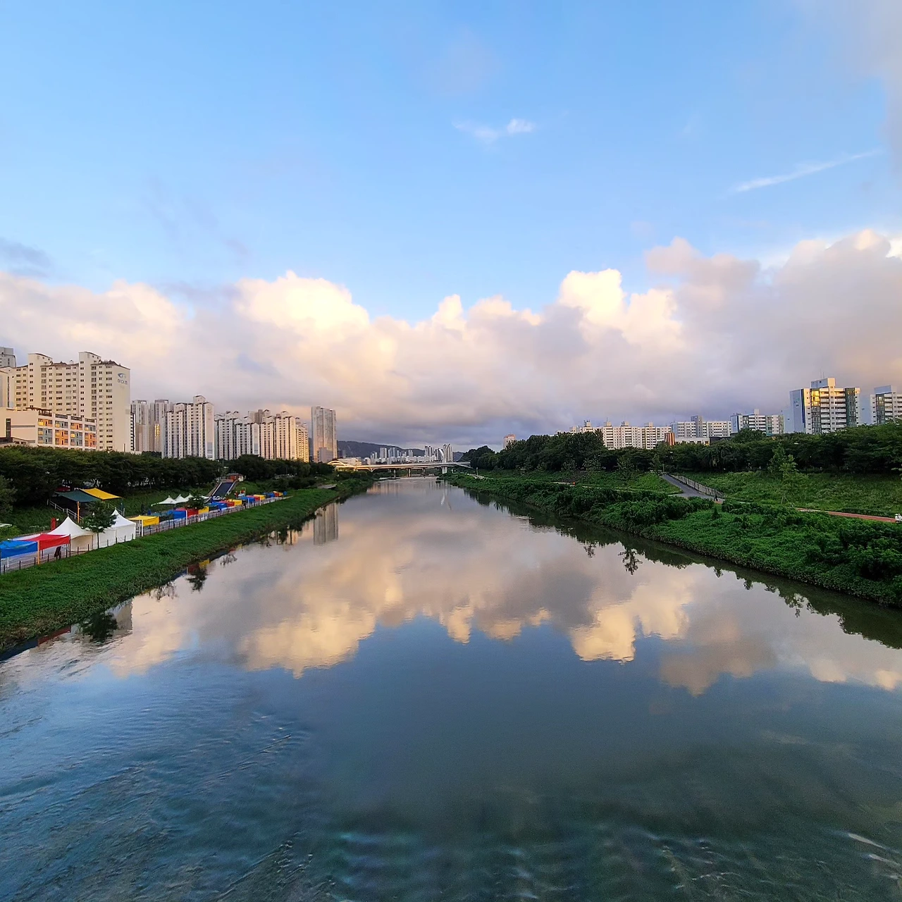 다리 밑을 지나 쭉 뻗은 강줄기는