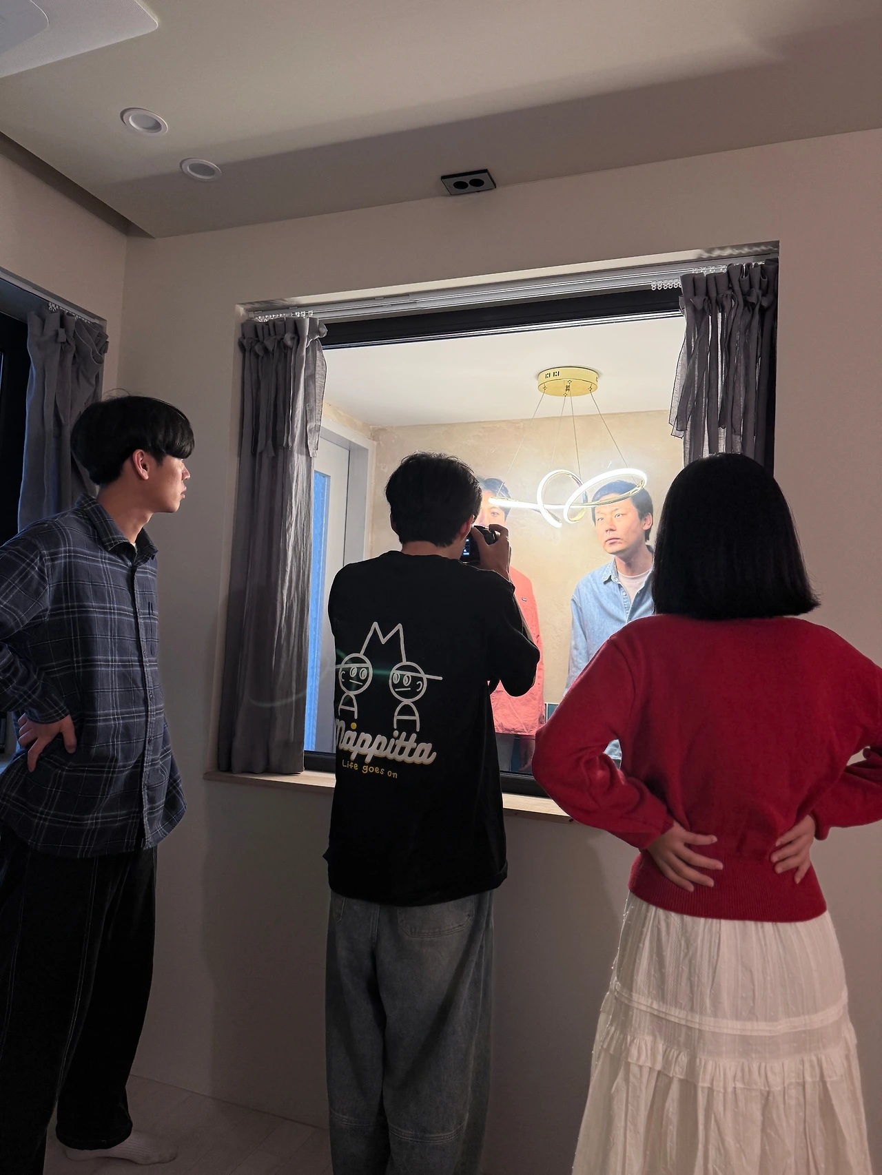 연극을 진짜 올리는 건가? 내가 연극에 참여하고 있는 게 맞나? 물음표로 가득 차 있을 때도 연습은 계속되고 있었다. 그리고 난 MT까지 따라갔다. 지원사업이 되지 않아 분위기가 가라앉아 있던 와중에 MT는 없다는 걸 배우들이 밀어붙여주어 성사된 여행이었다. 감사하게도 전주의 멋진 숙소와 맛있는 음식을 지원받아 간만에 자유롭게 음주 가무를 즐겼다. 모두가 취한 김에 내 시도 보여주고, 낭독 전문 배우인 준서 배우의 낭독까지 들으며 따뜻한 기억이 남았다. 종이에만 가둬 주었던 텍스트가 목소리를 만나 전혀 다른 결로 전달되는 순간을 가까이서 보는 경험은 생각보다 오래 남아 있다. MT라는 명목이었지만 숙소가 워낙 좋아서 내친김에 배우들의 사진도 직접 찍었다. 무언가 우당탕탕한 느낌이었지만 그것대로 색다른 경험이었다. MT를 다녀온 뒤 포스터 제작도 됐고 본격적인 연극 홍보를 위한 준비가 시작됐다. 여전히 무엇을 정확히 알고 있다고 말하기는 어렵지만, 적어도 연극이란 이런 식으로 사람과 시간을 묶어 하나의 형태로 만들어간다는 사실만큼은 몸으로 알게 된 한 달이었다.