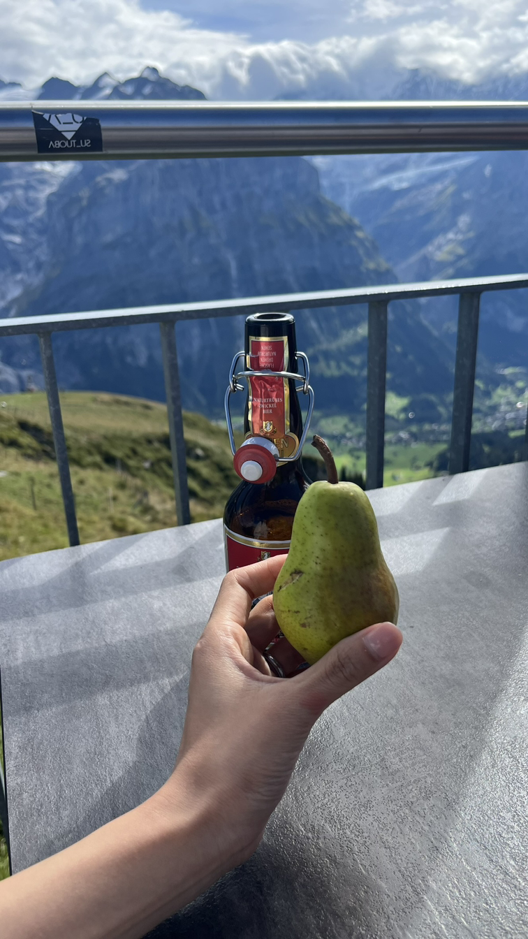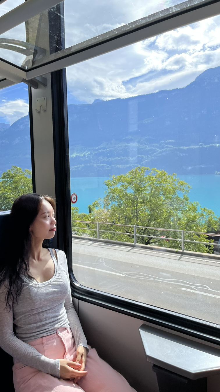 그다음 날은 또 조식에서 소중한 빵을 챙겨 왔다. 왜냐? 수영을 하러 가야 하기 때문! 그리고 기차를 타기로 했다 넓은 통창으로 푸른 호수가 다 보이는 멋진 기차였다. 기차 안에서도 오빠는 잘 붓는 내 다리를 내내 걱정하며 주물러주기 여념이 없었다. 내 발을 남에게 부탁하는 게 미안해서 페디큐어도 잘 못 받던 나였는데 내가 사랑하는 사람에게 그 수고를 맡기다니. 불편한 행복이었다. 그러나 오빠는 그게 편해졌으면 좋겠다고 했다. 나 때문에 수고하는 본인이 편해졌으면 좋겠고 그냥 당연하다는 듯 받았으면 좋겠다고 했다.