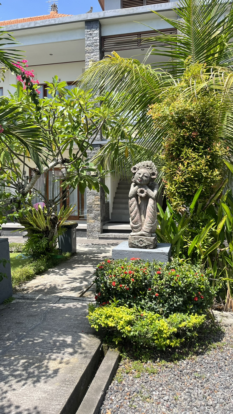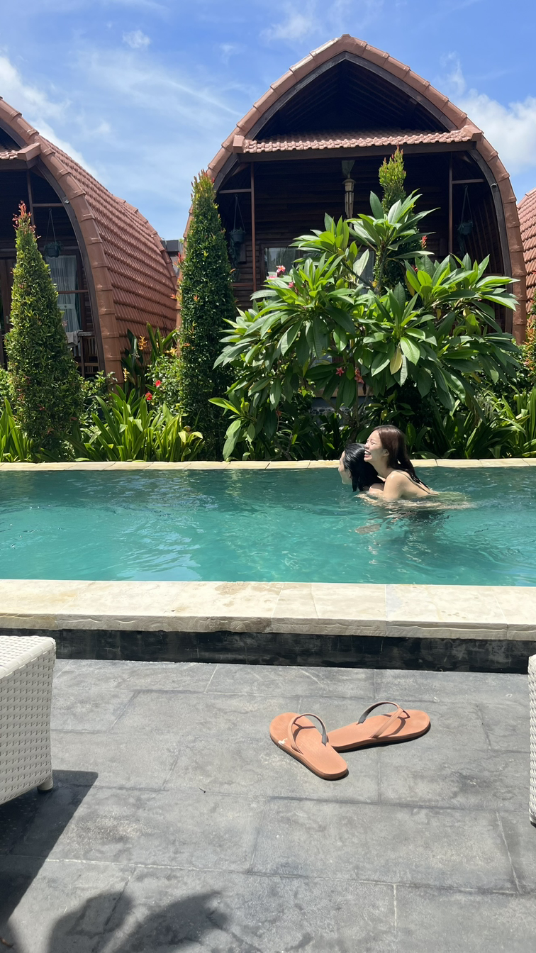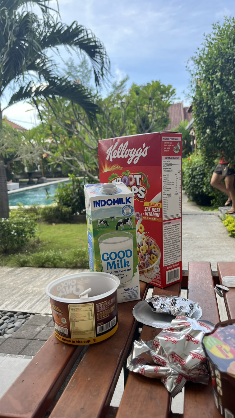특히나 첫 숙소도 급하게 정해서 결제하느라 나름 꼼꼼히 고른 숙소였지만 여전히 미지의 세계였다. 하지만 늦은 시간에 체크인하는 우리를 반겨주는 직원분의 친절로 시작해, 아주 저렴한 가격으로 배달시킨 음식으로 이어진 날들은 발리를 떠나는 날까지 우리를 행복하게 했다. 첫 숙소인 '마이라쿠 하우스'는 인자한 아저씨 주인분이 운영하는 곳이다. 각 숙소가 독채로 되어있고 그 앞은 공용 풀이 있었다. 물 색을 보고 냄새를 맡아보아도 깔끔하게 관리되고 있음이 분명했다. 그리고 아주 여러 명의 직원들이 오다녔는데 그들 모두가 눈만 마주쳐도 순수한 얼굴로 눈인사를 보내는 좋은 사람들이었다. 숙소 안에 있는 식당은 수영장을 바라보며 식사할 수 있도록 되어있었는데, 음식이 정말 맛있었다. 가격이 밖에서 먹을 때의 2/3 가격밖에 안 됐는데 훨씬 맛있었다. 게다가 풀 앞에 선베드가 3개 있고 그 옆에 테이블과 의자도 있어서 수영하다 바로 밥 먹고, 또 들어가서 수영하기를 반복할 수 있도록 되어있었다. 친절한 사람들과 깨끗한 환경 저렴한 식사비용까지.. 천국이다.