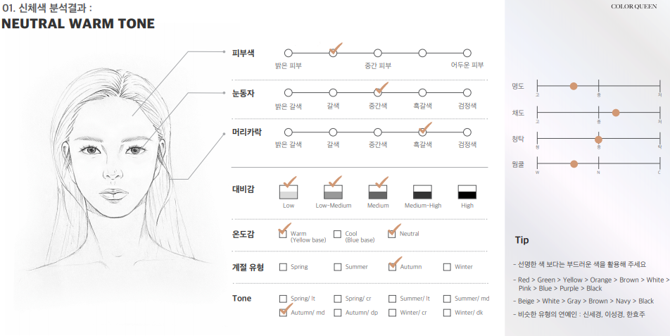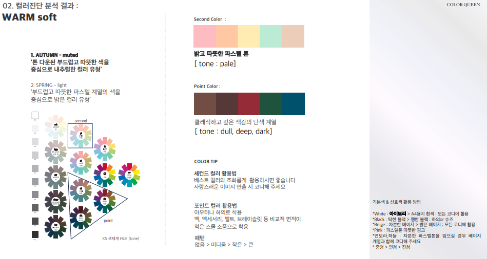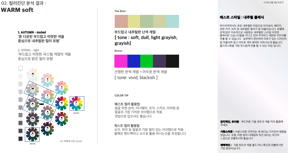 컬러는 한 마디로 뿌옇고 따뜻한 컬러가 잘 어울린다는 결과가 나왔다.