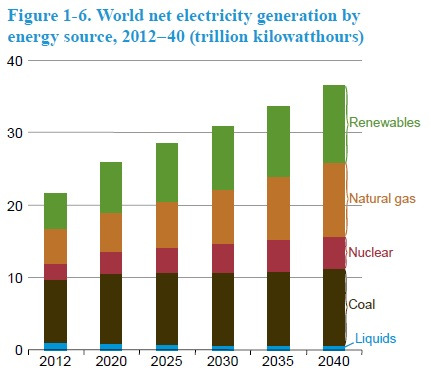 물론 이상적인 Sustainable development 시나리오를(그림 1) 보았을 때는 석유 석탄이 압도적으로 줄어들기 때문에 재생에너지 비율 확장이 가능한 이야기지만, 현재 전 세계적인 정책들을 종합하여 분석한 (보다 현실적인) 시나리오를 (그림 2) 봤을 때는, 한국에서 재생에너지 비중 확장이 가능한지 의문이 드는 것이 사실이다. 심지어, IEA는 2023년까지도 절반 이상의 재생에너지는 바이오 에너지가 주축이 될 것이라 말한다. 풍력과 태양에너지가 전 세계적으로 증가하는 추세라지만 그 비율은 바이오에 비하면 훨씬 낮다. 현재 바이오에너지가 아직까지 효율이 좋은 재생에너지인데 한국은 준비가 되어있는 것일까? 아니면 태양열 배터리 용량 확보 기술에 대한 자신감인 것일까?