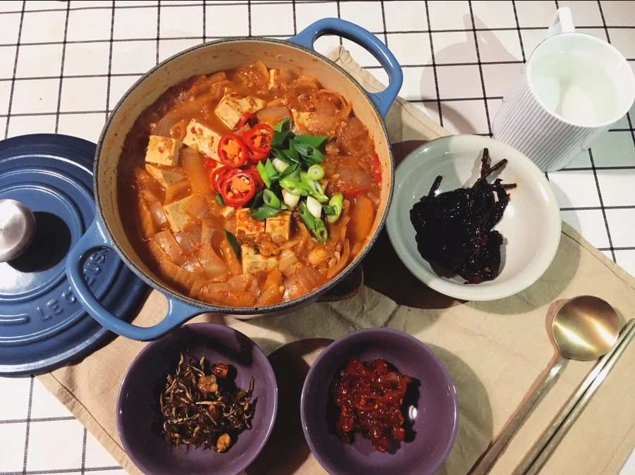 그래서 청국장. 깊어지는 겨울밤에 따뜻하게 몸 든든히 해 줄 수 있는 음식이라 생각했다. 볶은 멸치 위로 쌀뜨물을 적당히 붓고, 두부 한 모를 다 썰어 넣고, 적당히 익은 배추김치와 양파를 듬뿍, 간은 된장으로 살짝 해주고 청국장을 풀어 고춧가루를 넣어 계속 뭉글뭉글 끓여주니 건강한 한 냄비가 된다. 한국에서 가져온 여러 밑반찬을 같이 곁들여 먹으니 그나마 단조로운 생활에 적당한 이벤트가 된다.