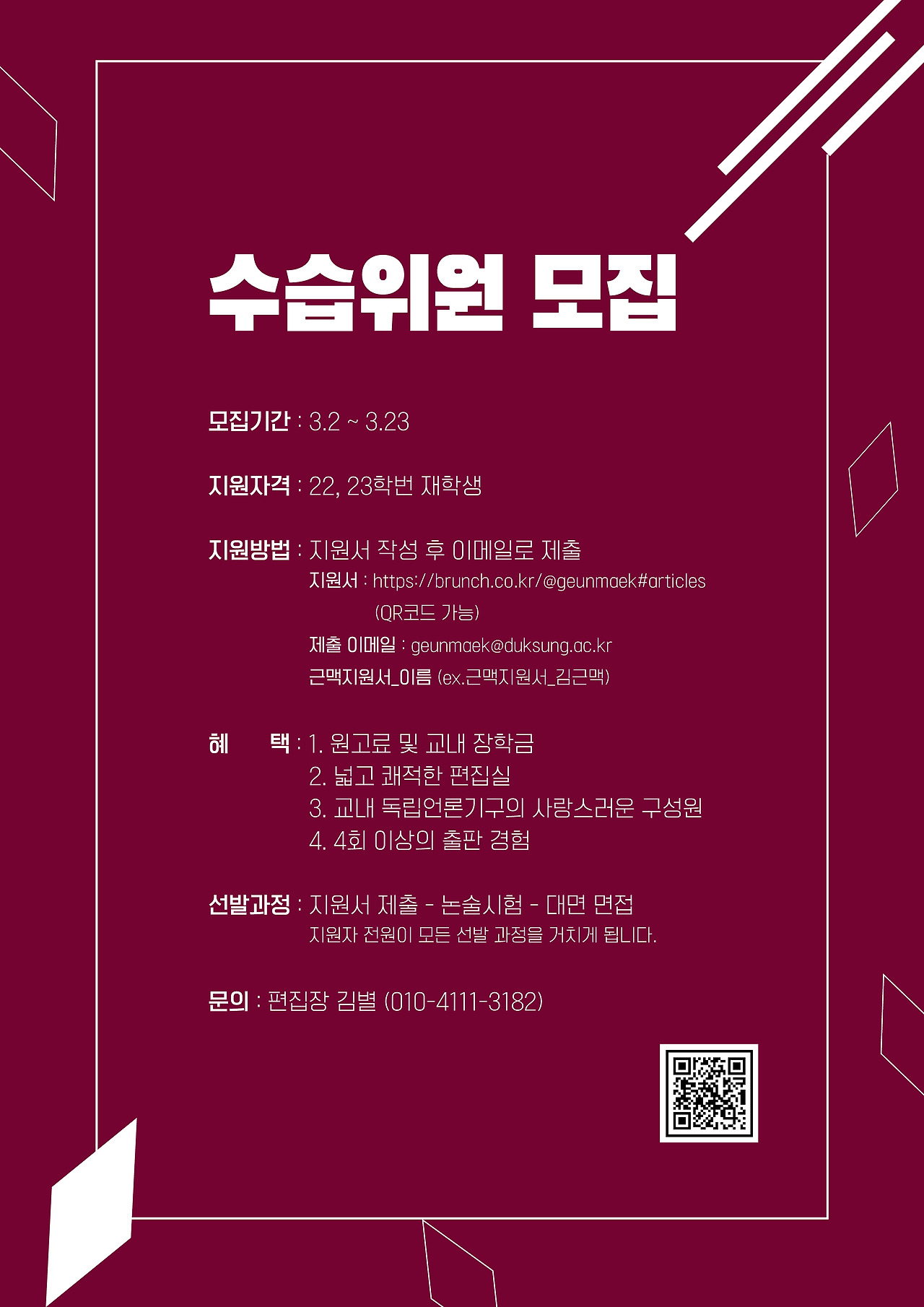 덕성여자대학교 교지편집위원회 근맥이 59기 수습위원을 모집합니다!
