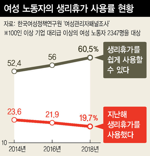 몇몇 고등학교에서는 월경 조퇴 확인 절차로 보건 교사에게 교체한 월경대를 검사받거나 친구에게 월경을 확인받으라고 요구한다.14) 증빙자료로 월경대를 제출하라고 요구하거나 월경대 사진을 찍어 보내라고 요구하는 직장도 있다.15) 끝없는 의심, 몸의 상태를 증명하고 사생활을 밝히길 요구하는 사회의 몰이해는 여성의 건강권을 빼앗고 심리적·육체적 어려움을 가중한다. 부정적 인식이 만연한 결과, 2020년 월경 휴가를 사용한 서울시청 여성 공무원은 0.4%에 불과했고, 울산·세종·전북 공무원은 한 명도 없었다.16)김수천 전 아시아나항공 대표는 승무원들이 신청한 월경 휴가를 138차례 거부해 근로기준법 위반 혐의로 기소되기도 했다.17) 여성 노동자의 월경 휴가는 학교의 월경공결제와 달리 근로기준법에 명시된 법적 권리로서 강제성을 지닌다. 하지만 월경을 입증하라는 요구와 대체 근무자가 없다는 말 앞에서 권리는 무력해진다.18) 여성의 몸과 월경을 이해하기를 거부하는 사회에서 월경공결제는 ‘여성을 배려한다’는 표면적 눈속임에 지나지 않는다.