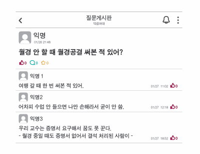 일반적으로 월경은 28일 간격으로 3-5일간 지속되며, 21-35일 간격으로 2-7일간 지속되는 것까지 정상적인 월경 범주에 해당한다.7) 따라서 우리대학을 포함한 다수의 대학은 학기당 3-5회, 20-22일 간격으로 공결제 사용의 횟수 및 주기를 규정하고 있다. 하지만 모든 월경이 ‘정상 범주’에 포함되지는 않는다. 통증이 단 하루만 지속되는 것도, 월경주기가 항상 규칙적인 것도 아니다. 결국 해당 규정은 ‘정상적인 월경’에 속하는 최소한의 건강권만을 보호하는 것과 마찬가지이다. 악용을 막기 위해 월경의 다양성과 몸의 차이를 배제하는 것이다. 월경 그 자체에는 주목하지 않고, 악용 사례에만 집중하며 혐오를 확산하는 상황은 여성 자체를 배제하는 일로 이어질 수 있다. 가부장제 사회에서 여성의 정체성은 몸의 경험을 근거로 형성될뿐더러, 여성과 여성의 몸을 분리하는 것은 불가능하기 때문이다.8) 따라서 몸의 경험을 인정하지 않는 것은 여성 자체를 인정하지 않겠다는 선언이기도 하다. 혹자는 최소한의 수준이라도 보장해 주는 게 어디냐며 배부른 소리라고 비판할지도 모르겠다. 아주 틀린 말은 아니다. 세상에는 보호받지 못하는 월경이 넘쳐나니 말이다.
