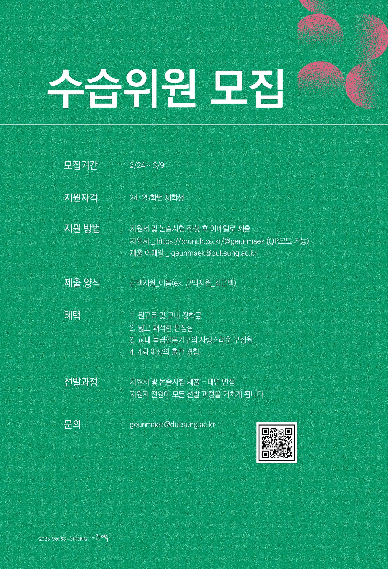 교지편집위원회 근맥에서 61기 수습위원을 모집합니다.
