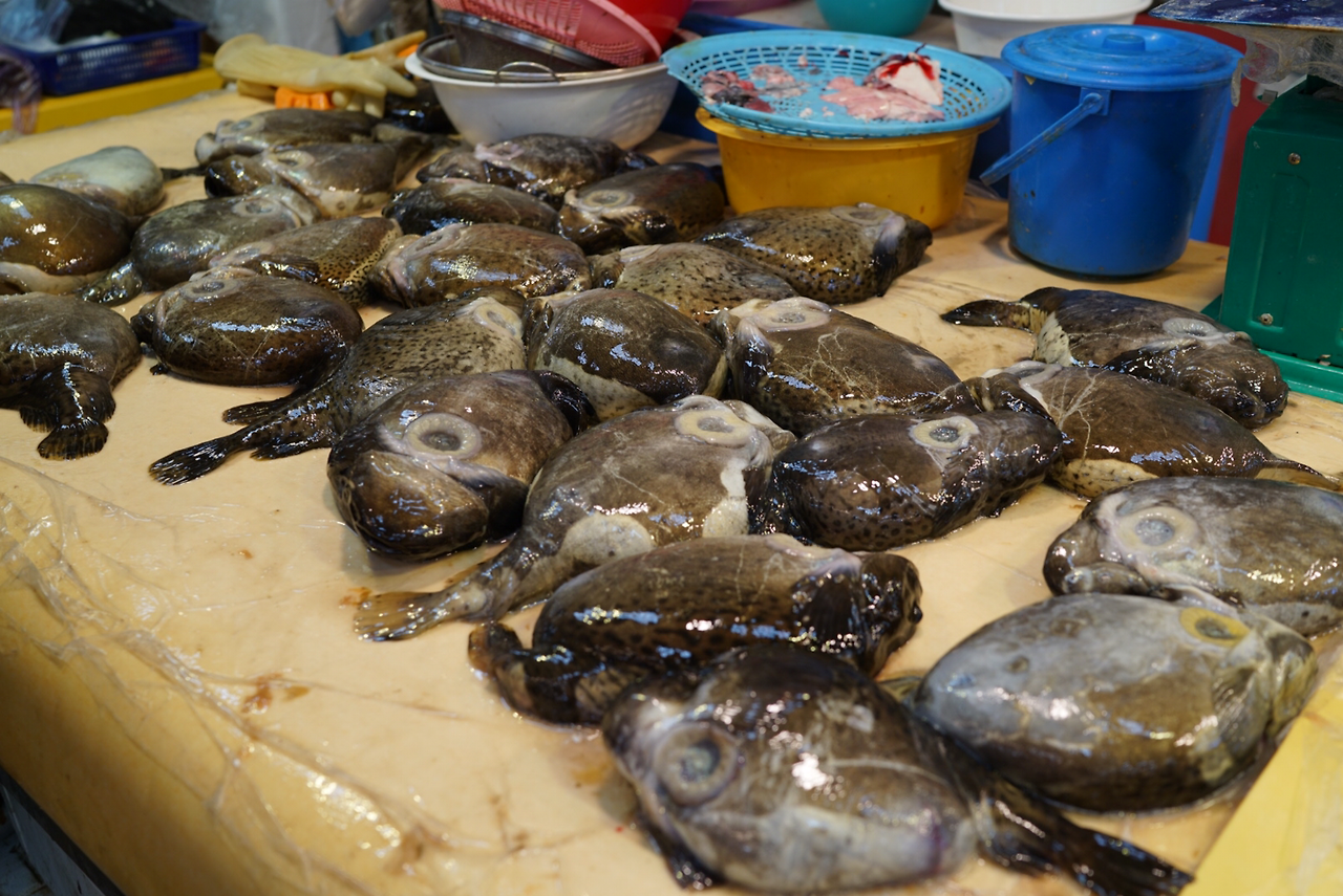 너무도 못생긴 이 고기의 정식 이름은 '도치'이다. 심술이 나서 퉁퉁 부은 것 같다고 하여 강릉에서는 '심퉁이'라고 부른다. 지금까지 살면서 본 해산물 중 심퉁이는 가장 못난 생선이다. 복어도 아귀도 이렇게까지 흉하진 않다. 고등학교 때 엄마를 따라 시장에 갔다가 심퉁이의 실제 모습을 처음 보고 나는 기절초풍을 했다. 너무 놀라 소리를 지르며 엄마의 등 뒤로 숨었는데 계속 눈앞에 어른거리는 시커먼 모습을 지울 수가 없었다. 그 이후 한동안 시장 따라가는 일을 피했을 정도로 난 심퉁이가 끔찍하게 싫었다.