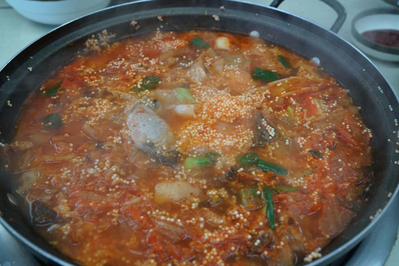 기름진 차례음식 준비가 끝난 설 전날. 저녁밥상엔 도치알탕이 한냄비 올라왔다. 신김치를 볶다가 수북하게 나온 도치의 알과 데쳐낸 살을 넣어 푹 끓여내면 구수한 냄새가 온집에 진동을 한다. 손맛 좋은 올케 덕분에 식당에서 먹었던 것보다 더 맛난 알탕을 먹었다. 오랜만에 모인 식구가 둘러앉아 다같이 먹다보니 냄비는 금세 바닥이 났다.