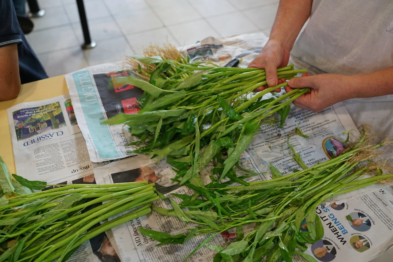 코코넛 과육을 갈아서 파는 가게의 주인은 내게 먹어보라며 금방 갈아놓은 과육을 두어 꼬집 집어주기도 했다. 깡꿍을 다듬고 있던 아저씨는 나를 보자 웃으며 한국에도 깡꿍이 있냐고 물으셨다. '나 한국사람인 거 어찌 아셨을까.' 없으면 한 단 줄 테니 가져가라고 농담을 하셔서 사진 찍어도 되냐고 여쭈니 맘껏 찍으라신다.