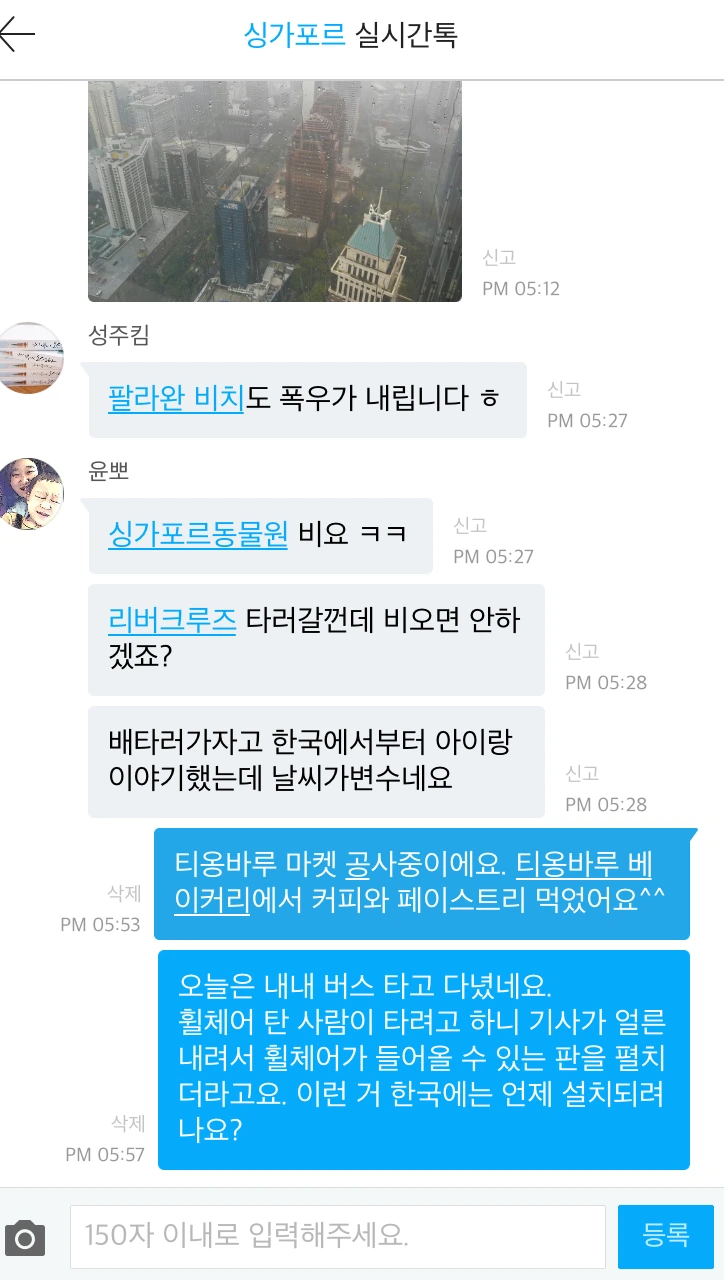 티옹 바루 쪽으로 오전 일정을 잡았던 날 아침에 들렀던 티옹 바루 재래시장은 건물 자체가 보수공사 중이었다. 시장 구경 후 푸트코트에서 맛난 식사를 하려던 계획은 물거품이 되었다. 얼마나 허무하던지 대뜸 맥이 풀려버렸다. 혹시 나처럼 헛걸음 하는 사람이 없길 바라며 트래블라인 앱 실시간톡에 남겨두었다. 차이나타운에서 유명한 맥스웰 푸드코트는 청소하는 날이라 닫았다고 알려주시는 여행자와 그쪽으로 가고 있다가 톡을 보고 고마워하는 분의 실시간톡을 보고 있으니 트래블라인은 정말 유용한 앱이라는 생각이 들었다.