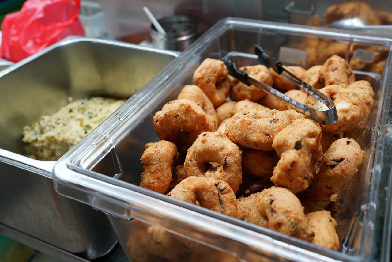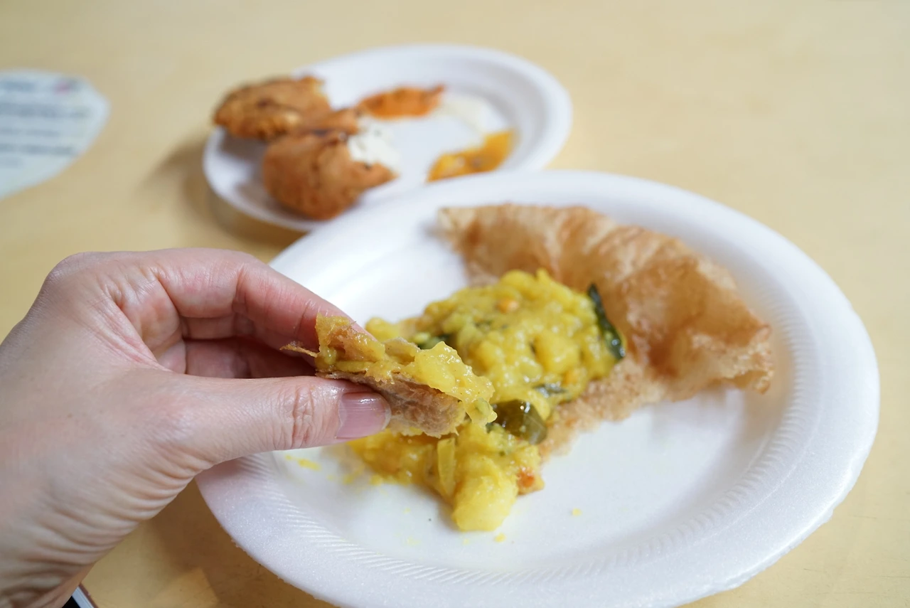돌아 나오는 길에 있는 푸드코트를 구경하다 나는 인도음식을 파는 노점 앞에 멈춰 섰다. 진동하는 커리향의 유혹을 뿌리치기가 쉽지 않았다. 빈 속은 요동치고 있었고 허기만 달랠 생각에 맛나 보이는 몇 가지 음식을 시켰다. 감자 커리를 얹은 로티와 삶은 렌틸로 만든 튀김. 이렇게 푸짐하게 먹었는데 1.50 달러(1200원 정도). 조금씩 맛만 보고 호텔에서 조식을 먹으려 했으나 한 입 두 입 먹다 보니 접시를 비우고 말았다. 한국에도 이렇게 싸고 맛난 푸드코트가 있다면 자주 갈 텐데 아쉽다.