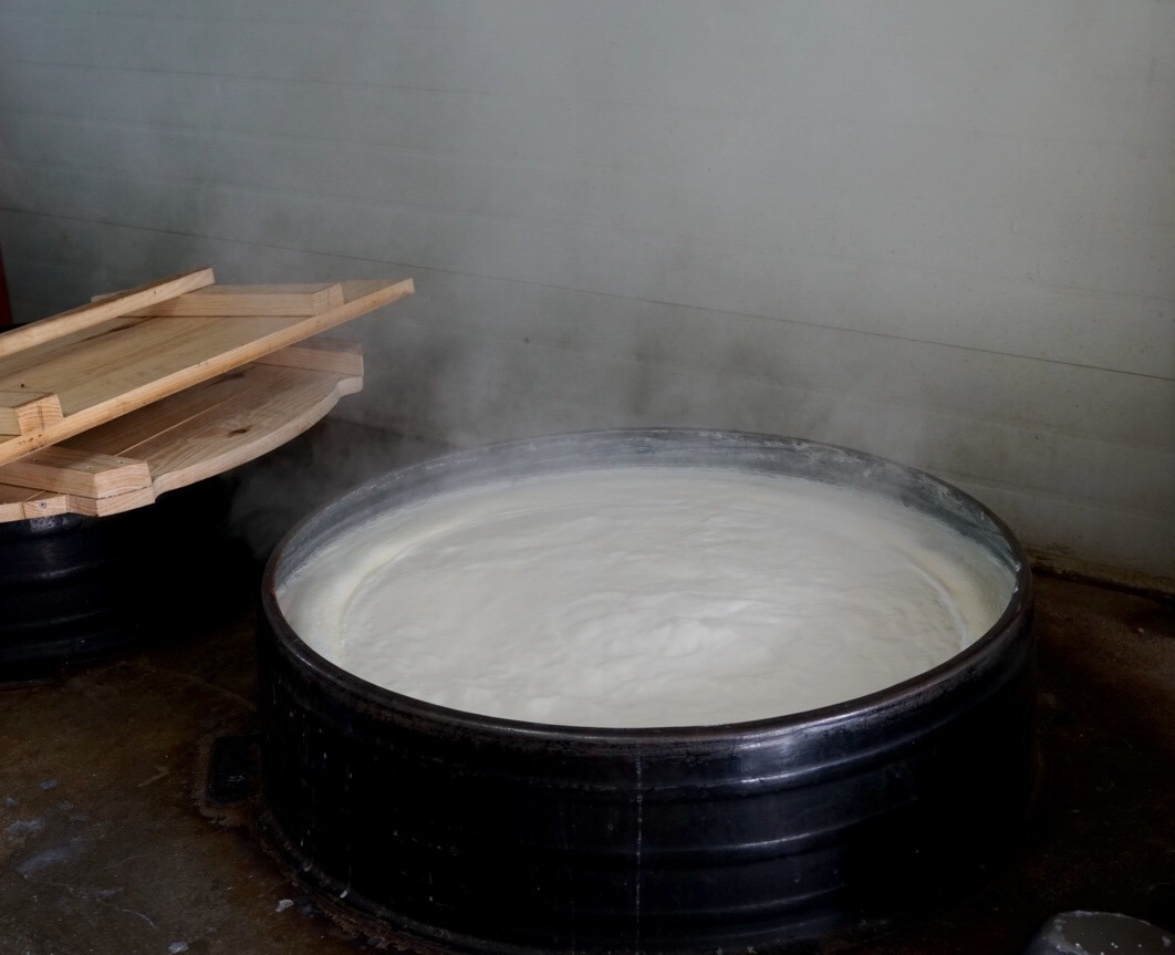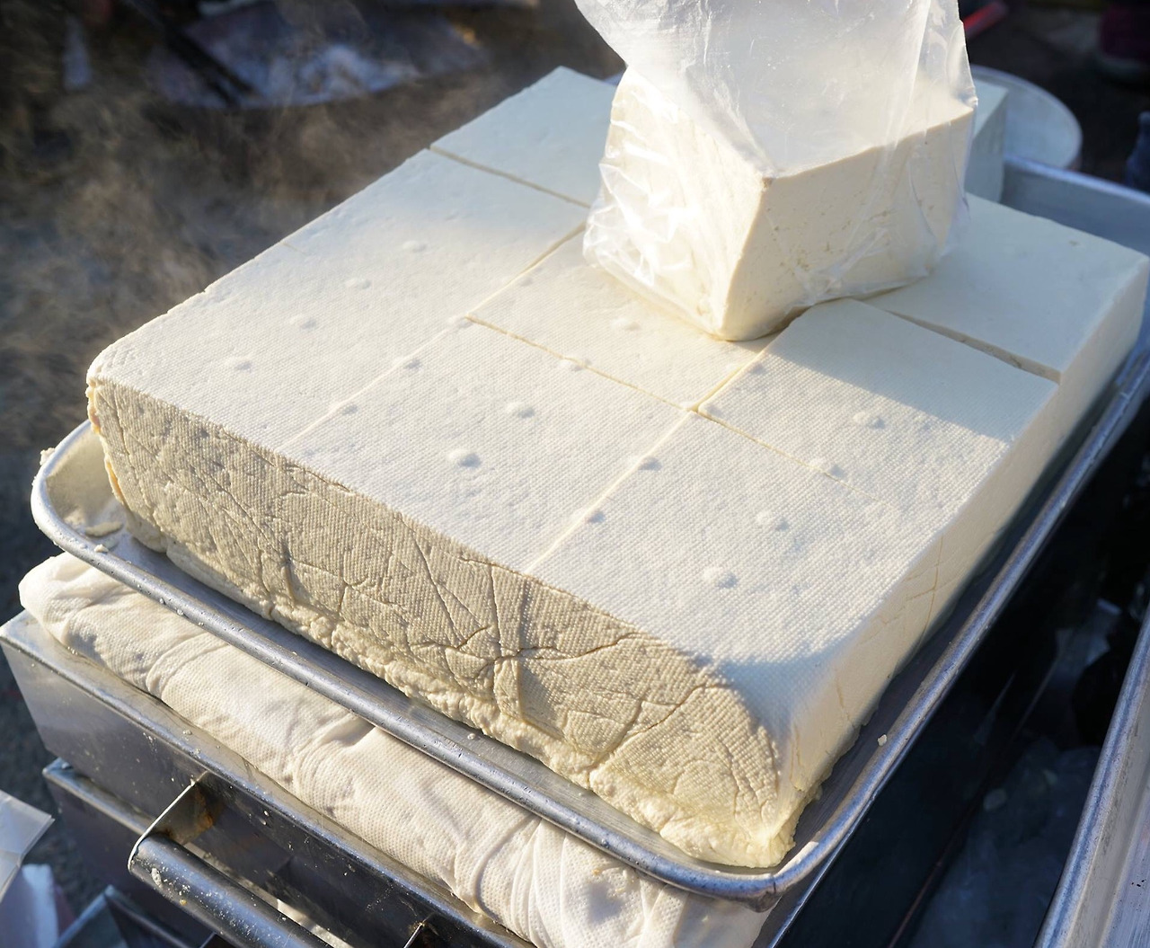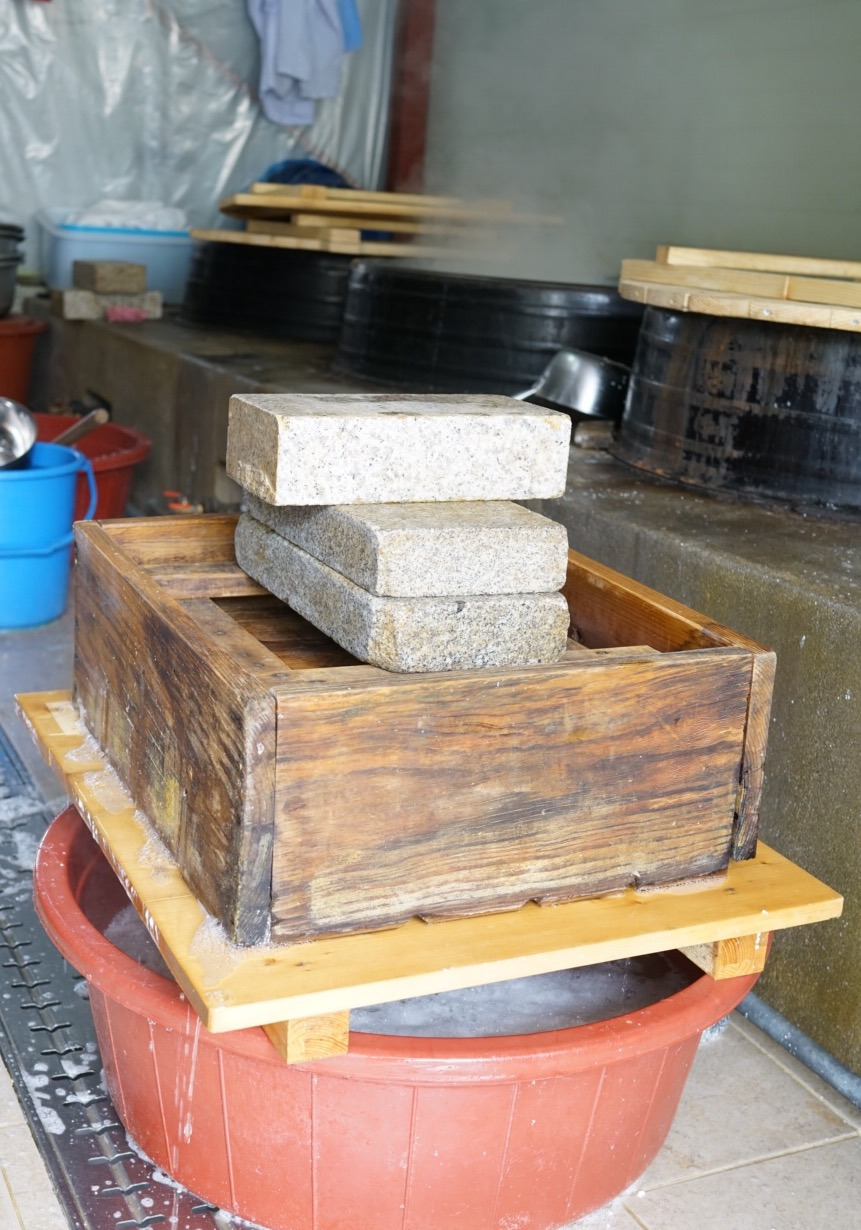 큰 가마솥에 하얀 콩물이 끓고, 아주머니는 커다란 나무주걱으로 쉴 새 없이 젓는다. 그러다가 어느 순간 간수를 넣고 저어주면 꽃이 피듯 몽글몽글한 모양으로 변해가는 게 보인다. 이 상태가 바로 순두부다. 엉긴 순두부를 바가지로 떠서 네모난 틀에 붓고 면포를 요리조리 오므린 다음 나무판을 덮고 위에 돌을 올려놓는다. 면포 틈으로 모락모락 나는 김과 함께 물이 빠져나가는 것을 지켜보다 보면 어느새 굳은 두부를 칼로 등분하는 순간이 온다.