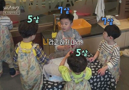 어린아이들이 이름도 묻기 전에 나이를 묻는 모습이다.