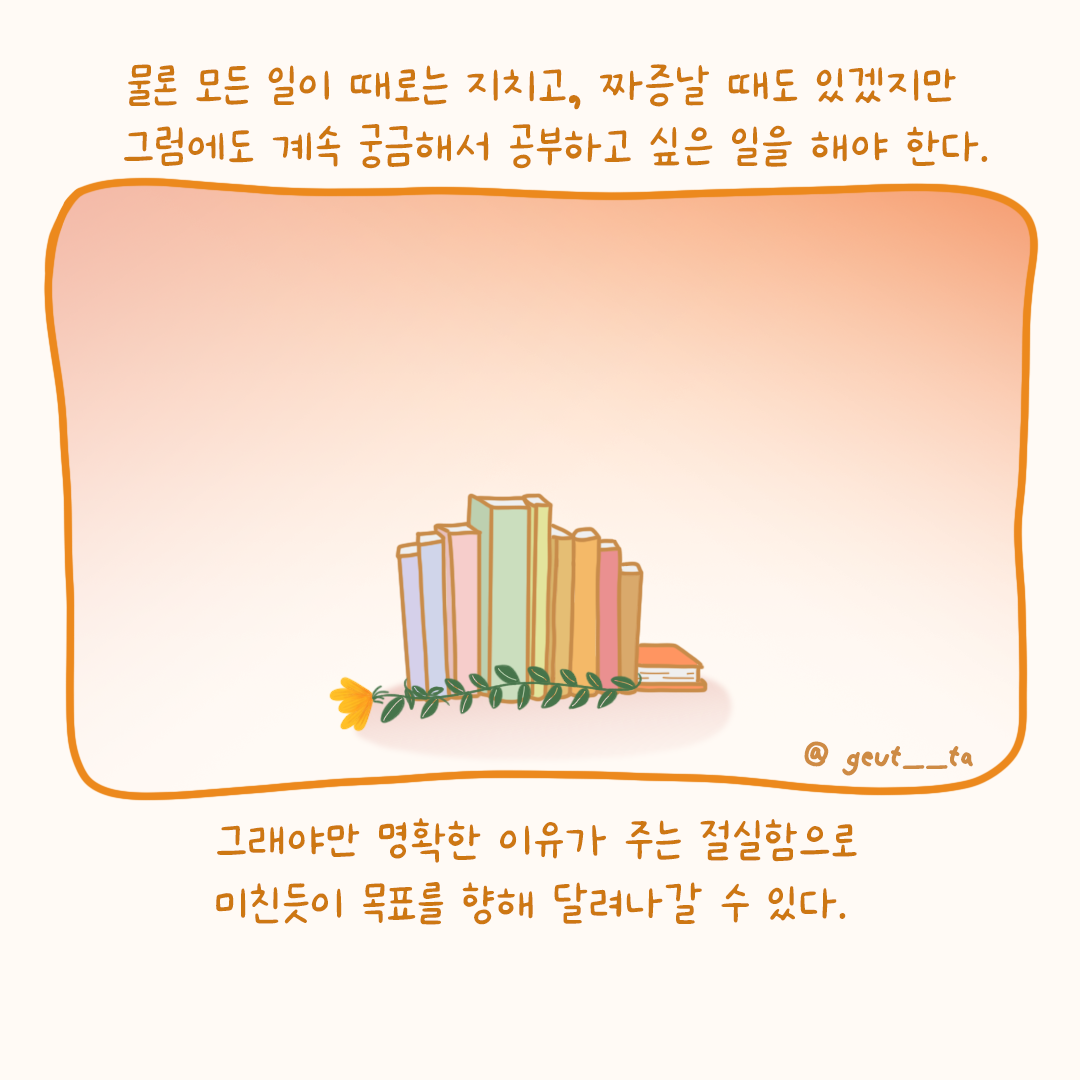 괴롭지만 계속 궁금하고 공부해보고 싶은 일을 찾아야 한다.