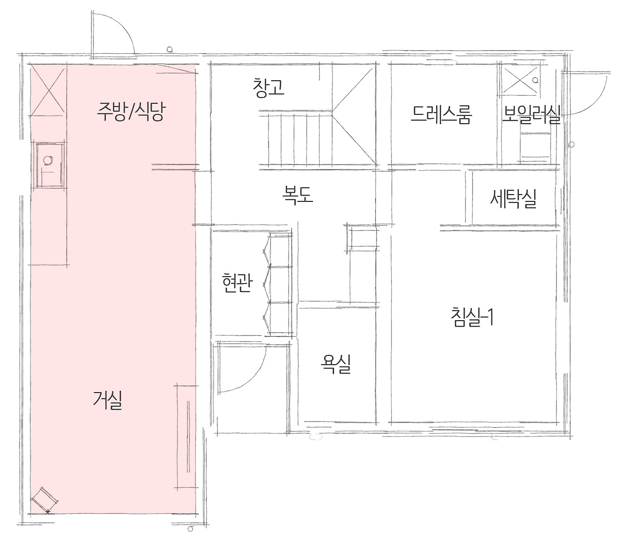 더불어 자투리 공간도 놓치지 않고 활용하여 최대한 공간을 더 넓게 사용한 예쁜단독주택입니다. 넉넉한 창호로 인하여 통풍과 빛과 바람이 드나들어 공기 순환에도 이로운 주택입니다.