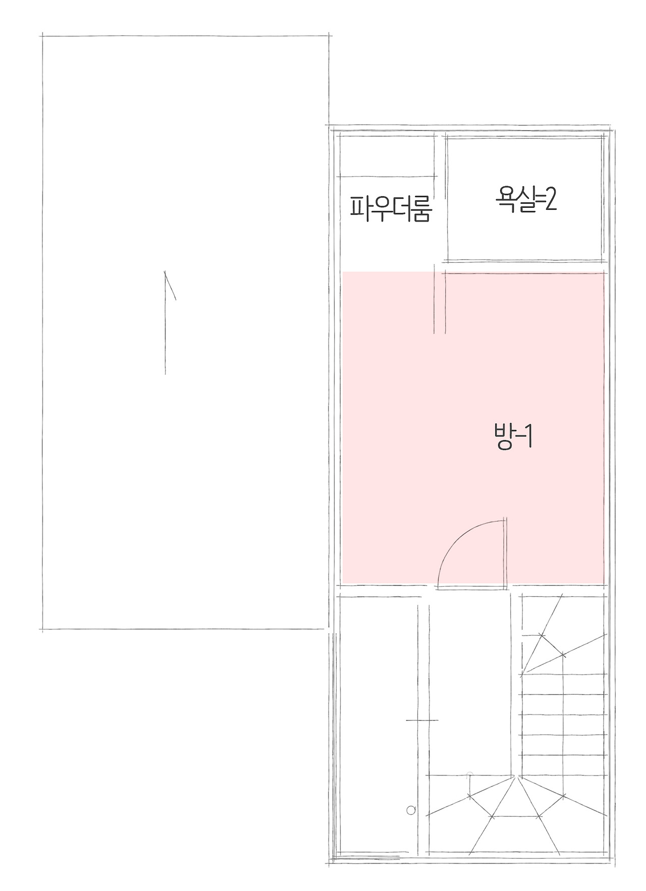 아무래도 현관을 거쳐 2층으로 가기에는 동선이 길기 때문에 툇마루를 통해서 2층으로 바로 올라갈 수 있도록 효율적으로 동선을 고려하였습니다. 그렇기 때문에 공간의 낭비가 없어 26평의 소형 주택이지만 개방감을 느낄 수 있으며 전원주택비용을 절감 시킬 수 있습니다.