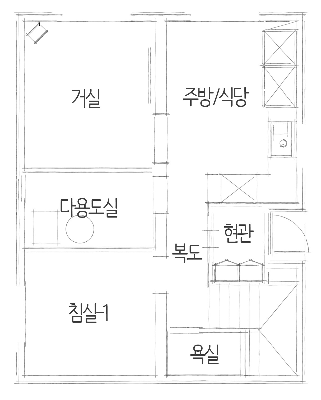 더불어 자투리 공간을 다용도실로 마련하여 수납공간과 데드스페이스를 최소화하여 예쁜단독주택 설계를 마무리 했습니다.