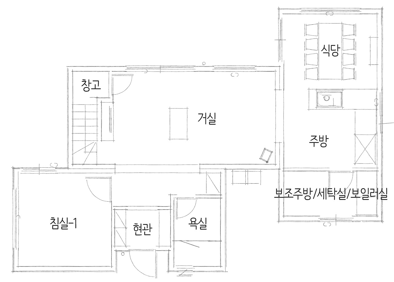 불필요한 공간은 삭제하고 작지만 알찬 공간 설계를 통하여 비용이 새어나가는 것을 방지했습니다. 짜임새 있는 콤팩트한 구성을 통해 데드 스페이스를 최소화하여 시공한 소형전원주택은 작지만 다방면에 있는 창을 통하여 개방감까지 느껴지는 구조입니다.