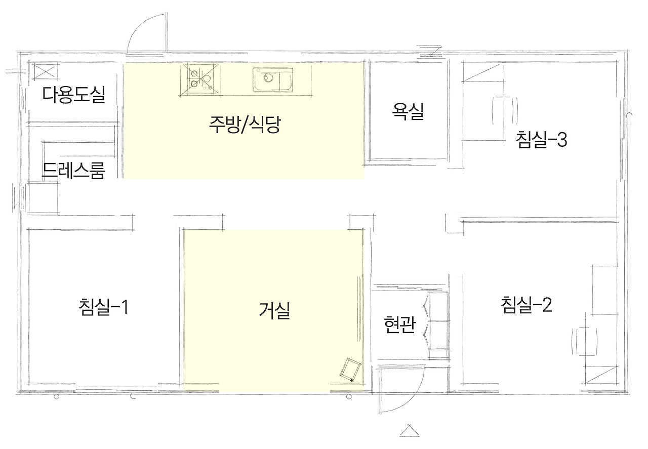1f_주방 식당_거실_화사하고 밝은 톤의 분위기를 포함