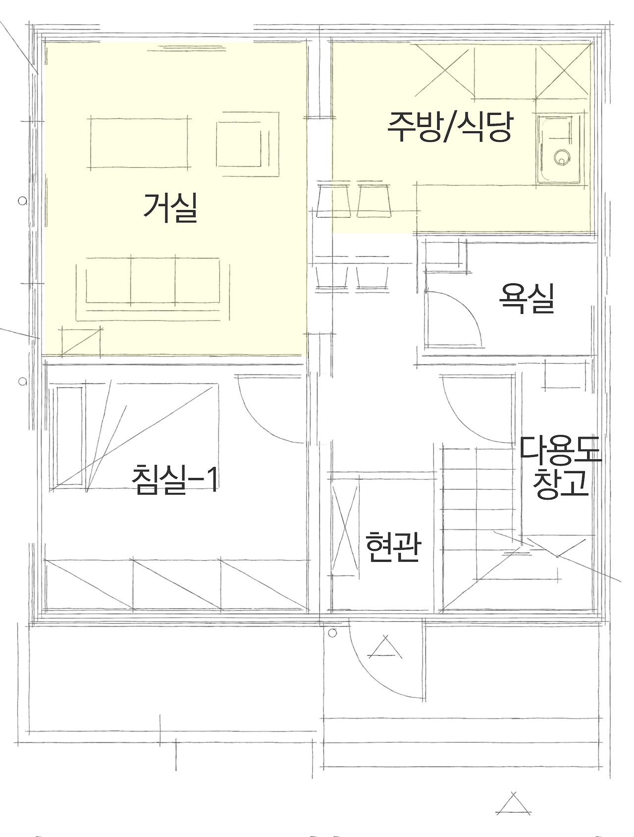 1f_거실_주방_중문을 통한 프라이빗한 구성