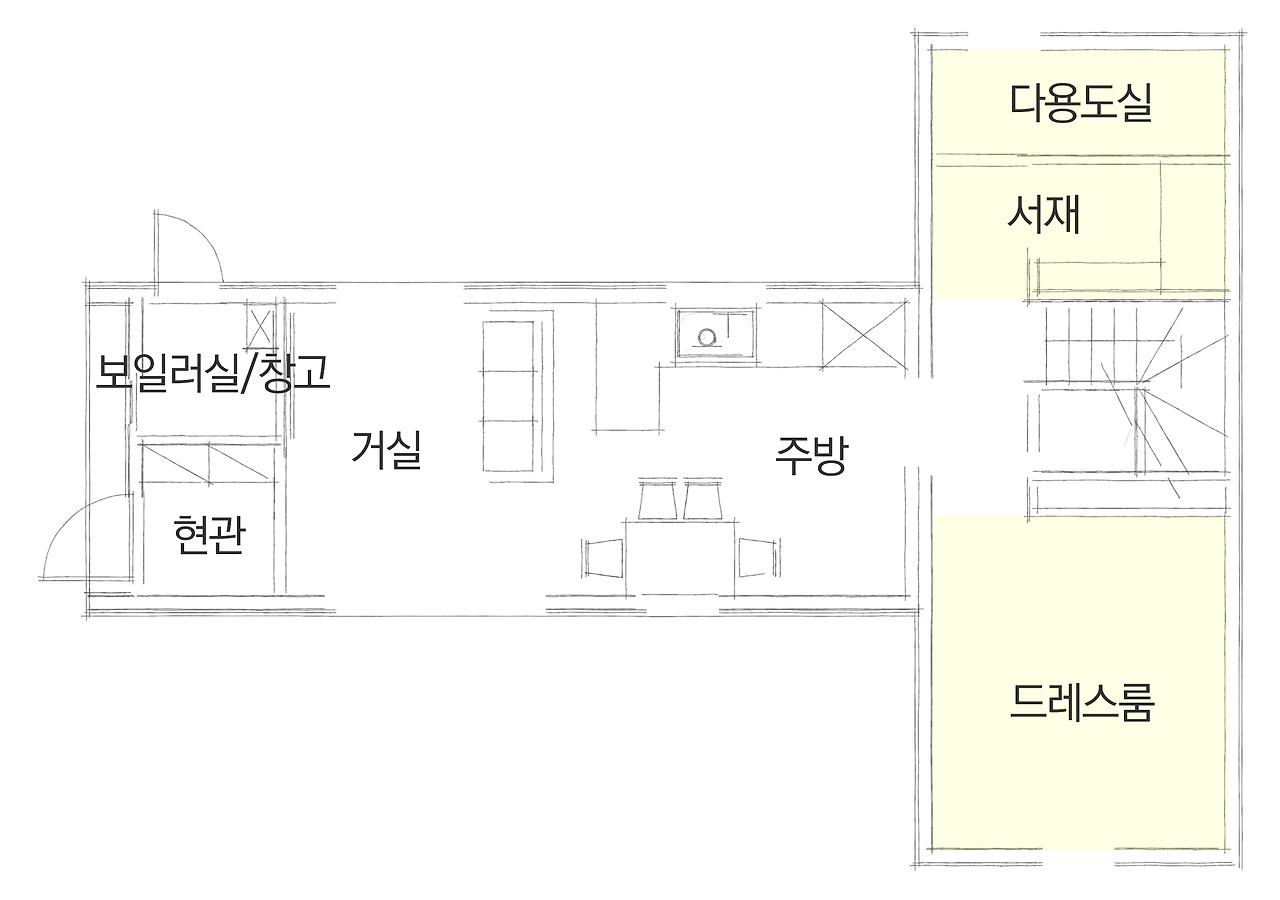 1f_다용도실_서재_드레스룸_우드톤으로 깔끔한 마무리