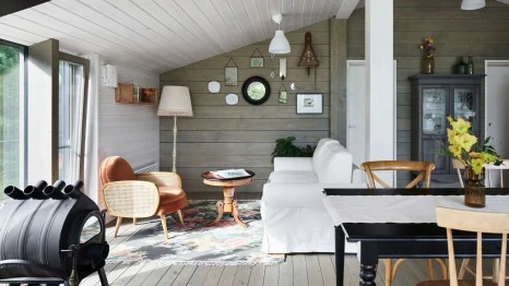 외관의 블랙과 브라운톤이 주는 차분함과 달리 내부는 화이트 톤을 메인 컬러로 화사한 분위기가 전해집니다. 공간 구분은 주방이 있는 공용 공간과 숲 방면으로 위치한 개인 공간으로 나뉘는데요. 전면 테라스와 이어지는 다이닝룸은 언제나 근사한 식사 시간을 만들어 줍니다.