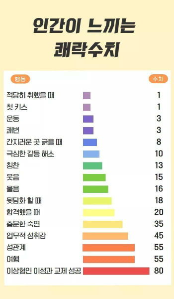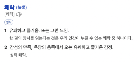 쾌락을 들었을 때 내가 개인적으로 드는 생각은 '본능적'이고, '순간적'이라는 것이다. '식사'에서 오는 쾌락, '섹스'에서 오는 쾌락, '쾌변'에서 오는 쾌락 등, 내가 알고 있는 의미로는 쾌락 자체로는 삶의 목적으로 삼고 지속적으로 추구해야 할 것이라고는 생각이 들진 않는다.