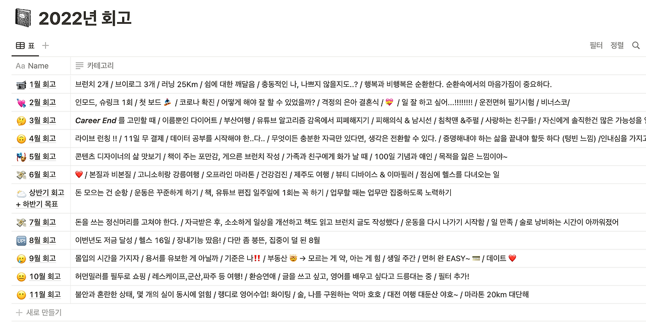 난 2020년 말부터 회고를 작성하고 있다. 매일 일기를 쓰진 못하지만 매 월 회고를 쓰는 것은 빼놓지 않고 있다. 모아서 꽤나 뿌듯할뿐더러 내가 뭘 했는지 바로 확인할 수 있어서 무척 좋다.