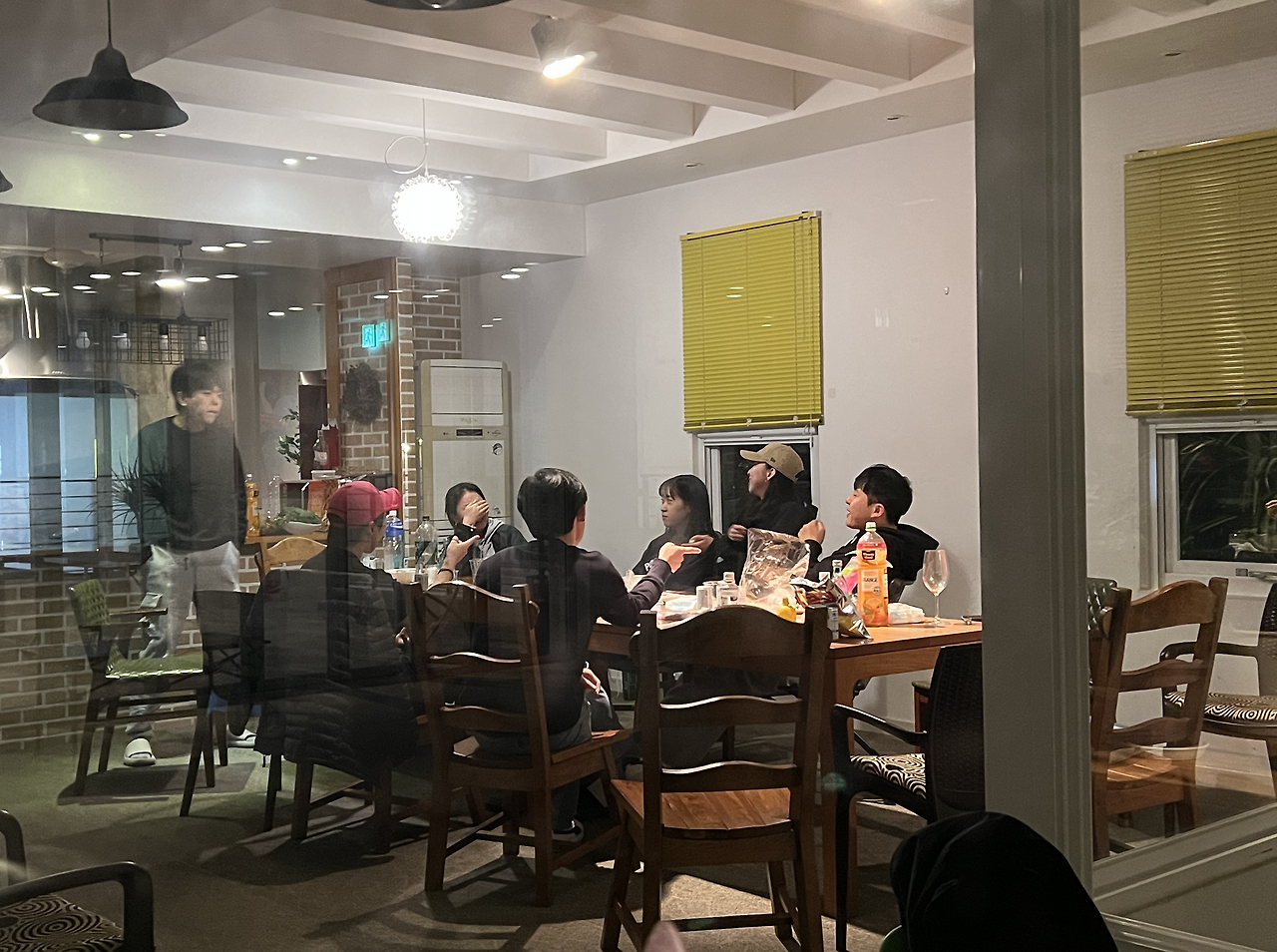 활발한 팀원의 주도로 워케이션을 다녀왔다. 금요일 일이 땡 치자마자 다들 고기를 구웠다. 한 테이블이 무너져 상을 다시 차리기도 해야 했지만 재밌었다. 내가 술에 엄청 취하지만 않았다면... 파주로 놀러 갔어서, 그다음 날 파주 헤이리마을로 커피를 마시러 갔다. 그리고 집에 돌아오는 길 차 안에서 엄청난 멀미를 경험했다.