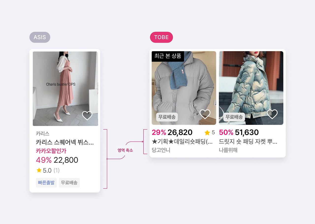 패션바이카카오(이하 패바카)의 상품카드는 문제점 2가지를 가지고 있었습니다.