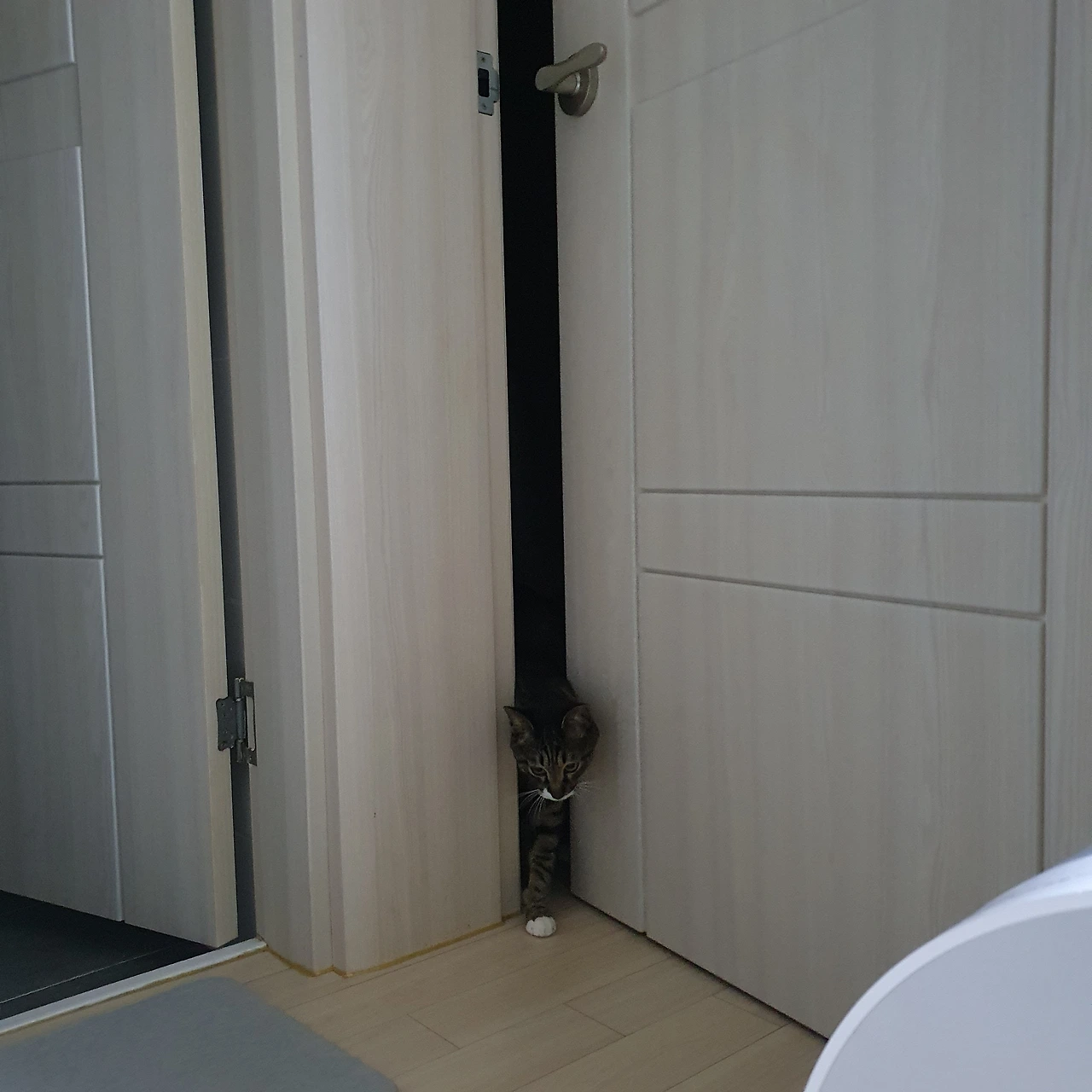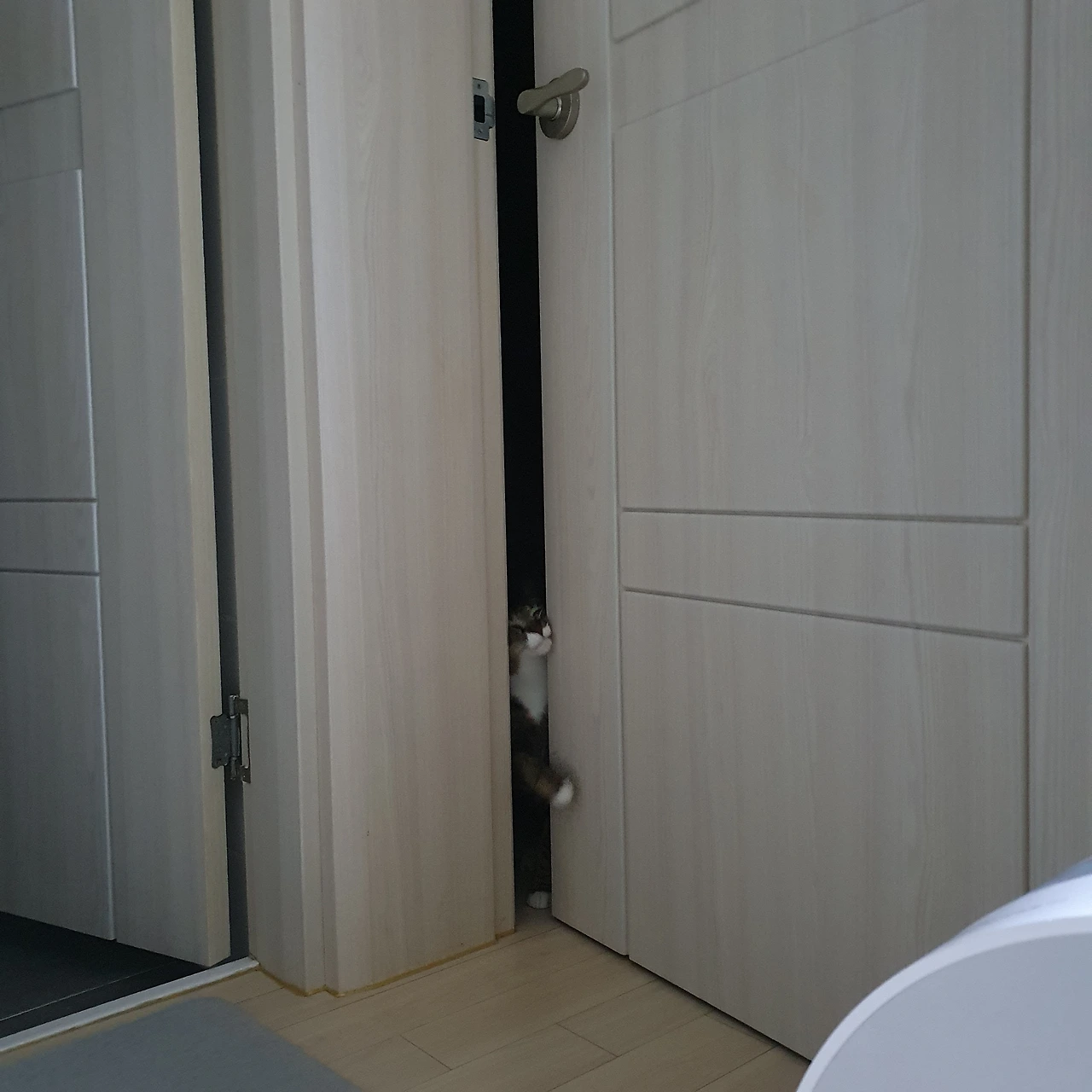 언제 깼는지 깨비가 문틈으로 보고 있더라고요.