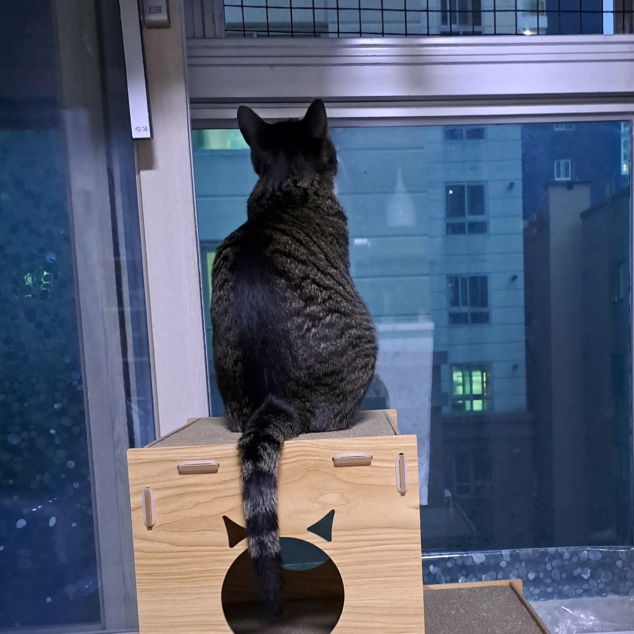 깨비는 하루에 한두 번 정도 창밖을 구경합니다.