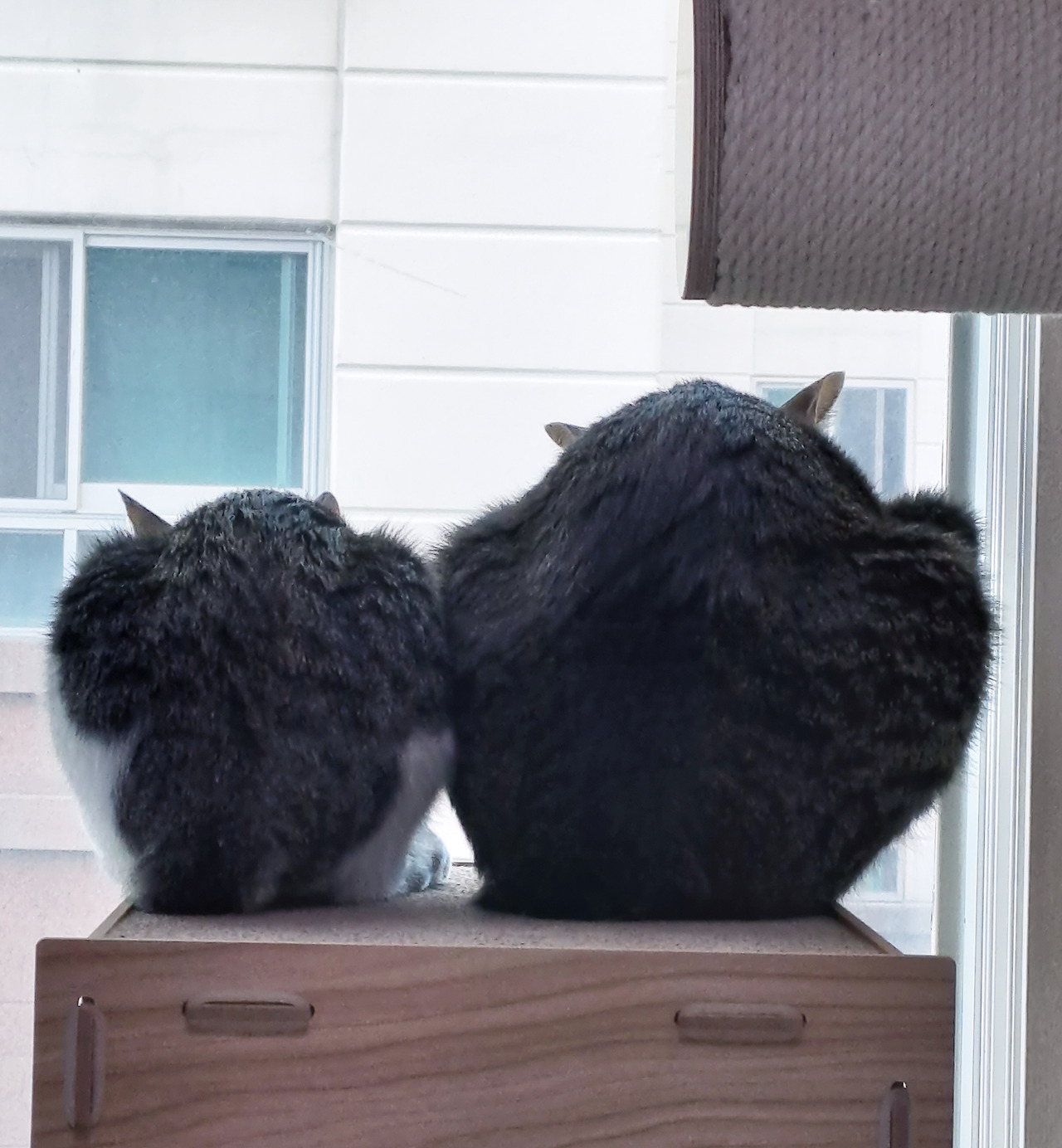 그것도 재밌다며 나란히 앉아 한참이나 창밖을 구경하는 고양이들을 보면