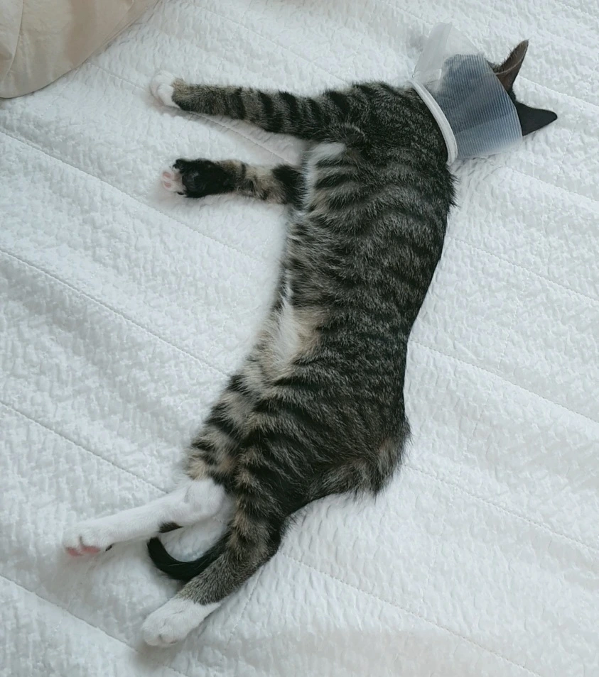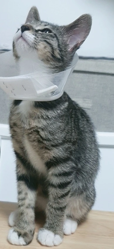 그런데, 어느 날 문득 깨비 귀를 봤더니 가려워 긁다 못해 피딱지가 생겼더라고요. 이 조그만 3개월 차 고양이가 혼자 얼마나 가렵고 답답했을까, 조금만 일찍 발견해서 관리해 주었으면 이 정도는 아니었을 텐데, 병원에 다녀와 넥카라를 씌우면서 그런 후회가 밀려왔습니다. 나는 내 마음대로 외출도 하지만 깨비는 이 좁은 집에서 마주치는 존재란 나밖에 없을 텐데.
