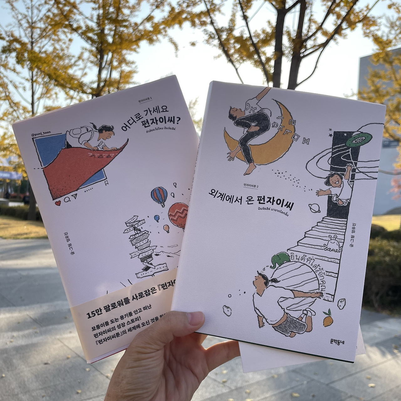 요새의 주말은 결혼식 준비로 예약과 방문, 찬양팀 연습으로 꽉 차있었다. 내 내향 자아가 숨쉴 구멍이 없어 답답하던 차였다. 오늘은 예배를 마치고 잠시 빈 시간에 좋아하는 작가님의 신간을 읽었다. 인스타그램에서도 펀자이씨툰을 정말 좋아했는데 책으로 엮이니 또 새롭다. 꾹꾹 눌러담은 서사를 따라가는 것이 즐겁고 풍성했다. 이번 주말이 단풍이 절정이라던데 연세대 단풍도 참 예뻤다. 3년만에 열린 연고전에 신난 학생들의 플래카드를 읽으며, 산책하는 강아지와 아기와 가족들, 연인들, 친구들을 구경하며 꼼지락거리면서 책을 읽는 시간이 행복했다.