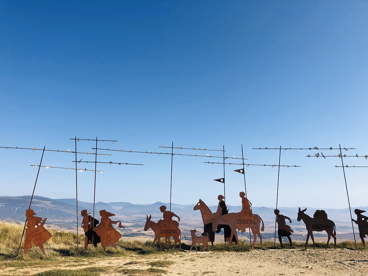 다음날, 팜플로냐에서 푸엔테 라 레이나로 가는 길에는 순례길의 상징적인 장소가 있다. 바로 용서의 언덕이다. 용서의 언덕은 말이 언덕이지, 산 위에 있다. 가파른 오르막을 오를 때는 이렇게 힘든 상황을 자초해서 만든 스스로를 용서할 수 없었다. 하지만 꼭대기의 탁 트인 풍경과 사진 속에서 보던 용서의 언덕 조형물을 보니 나 자신을 저절로 용서하게 되었다. 조형물은 옛 순례자 무리의 모습을 표현하고 있었다. 파아란 하늘을 배경으로 용서의 언덕(이라고 말하고 산을 뜻한다)에서 내가 왔던 길, 그리고 내가 걸어가야 할 길을 내려다보았다. 아직 아득하다. 끝나려면 한참이 남았지만 그래도 나름대로 매일을 성실하게 묵묵히 걷고 있다. 잘하고 있다는 느낌이 들었다.