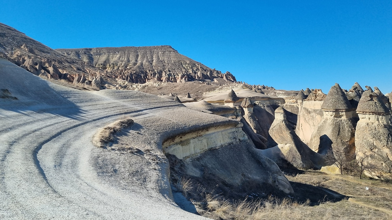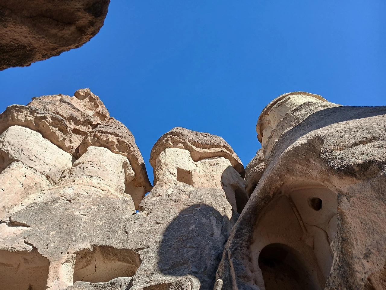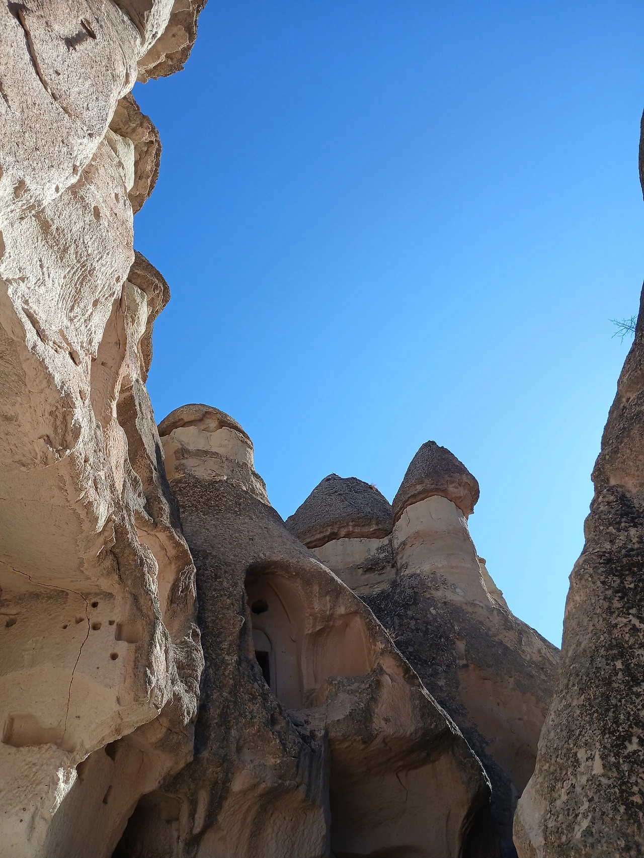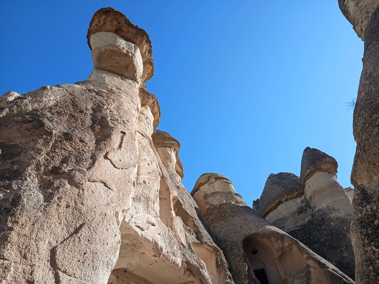 머나먼 과거 이곳은 대규모 폭발이 일어나던 화산지역으로 마그만 분출로 만들어진 용암바위 주위로 폭풍 후 폭풍인 화산 분진이 내려앉아 응회암으로 굳어져 둘러싸였고 경도가 낮은 탓으로 굽게 깎여나가 카파도키아 특유의 버섯 바위들이 만들어진 것이다.