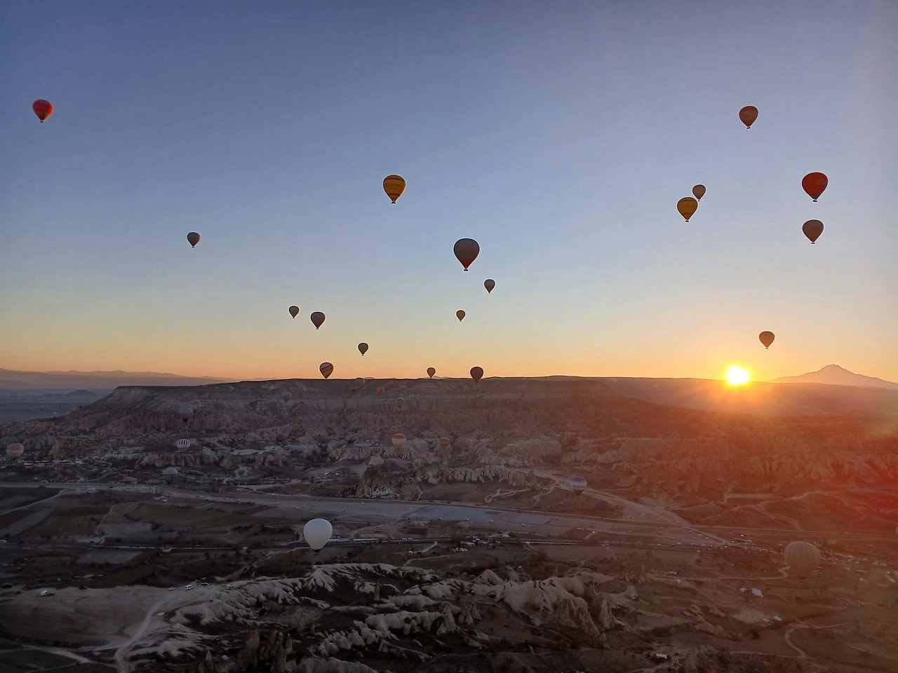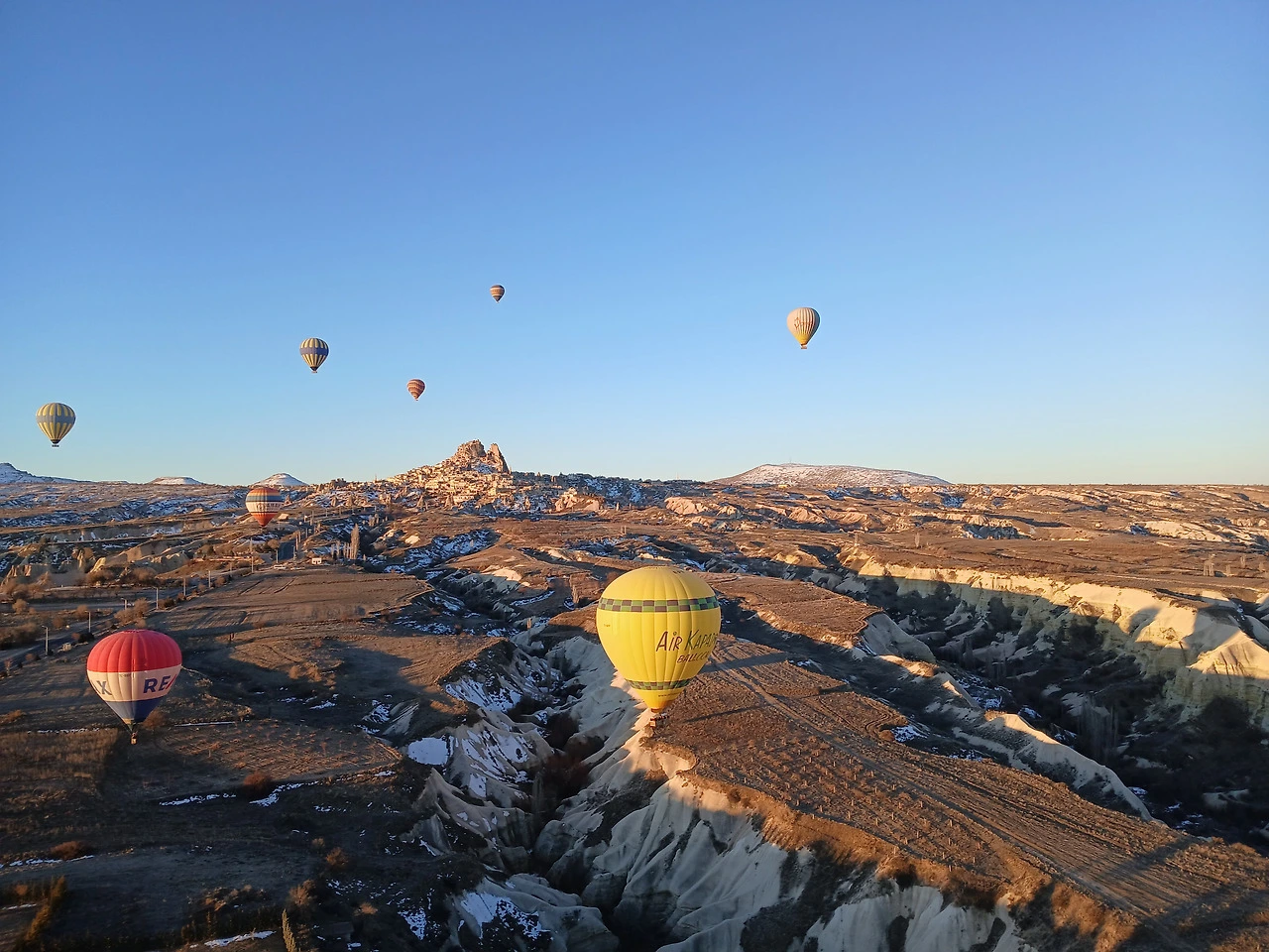 아직 해가 뜨기 전에 올라가는 기구여서 점점 시야가 밝아지는 카파도키아의 버섯 암석과 여러 지진대를 눈으로 보니