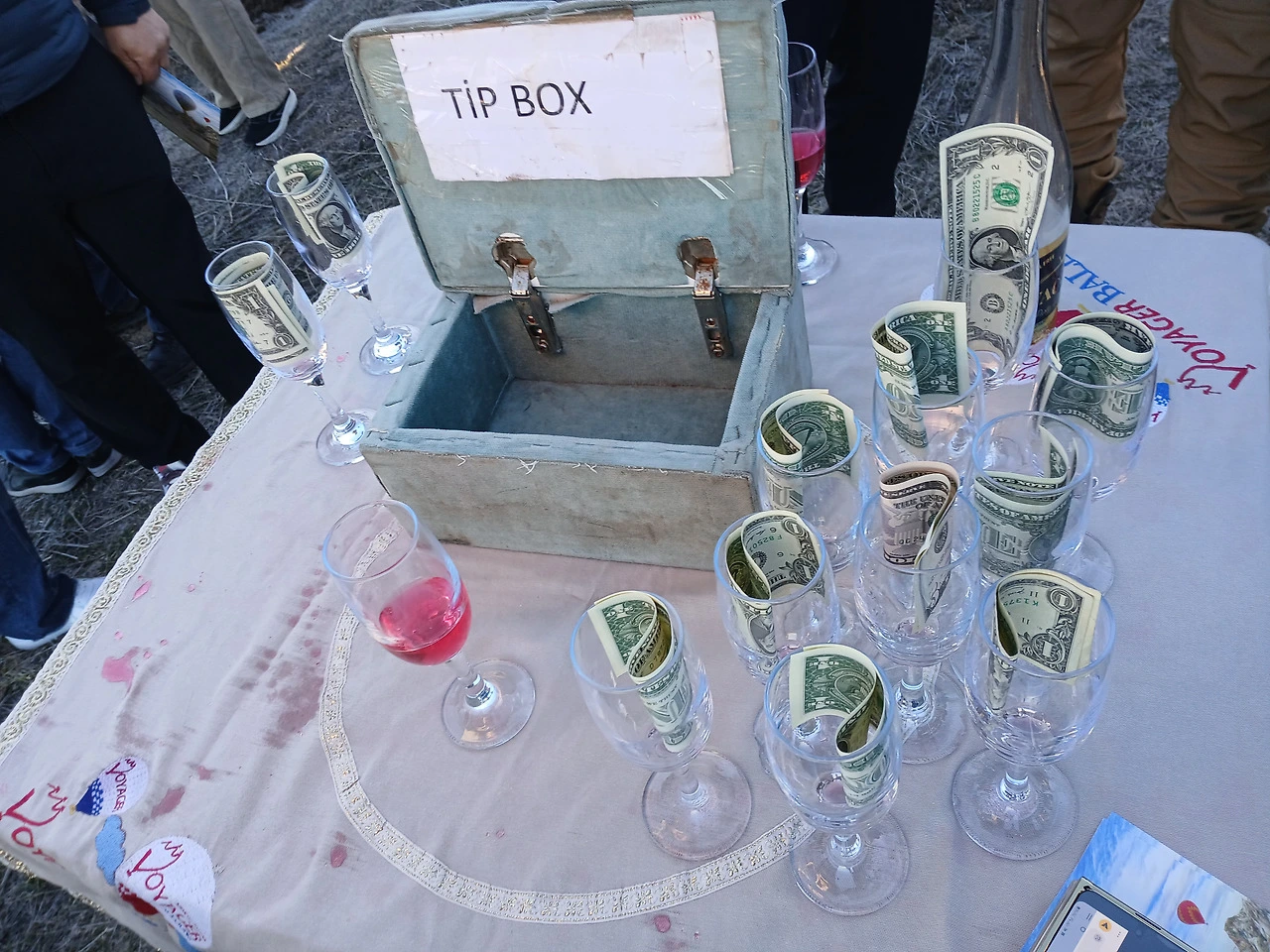 파일럿이 준비해 준 와인 쫑파티와 열기구 수료증을 건네받았다.