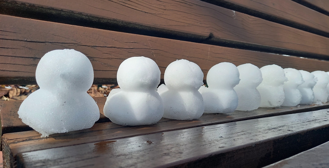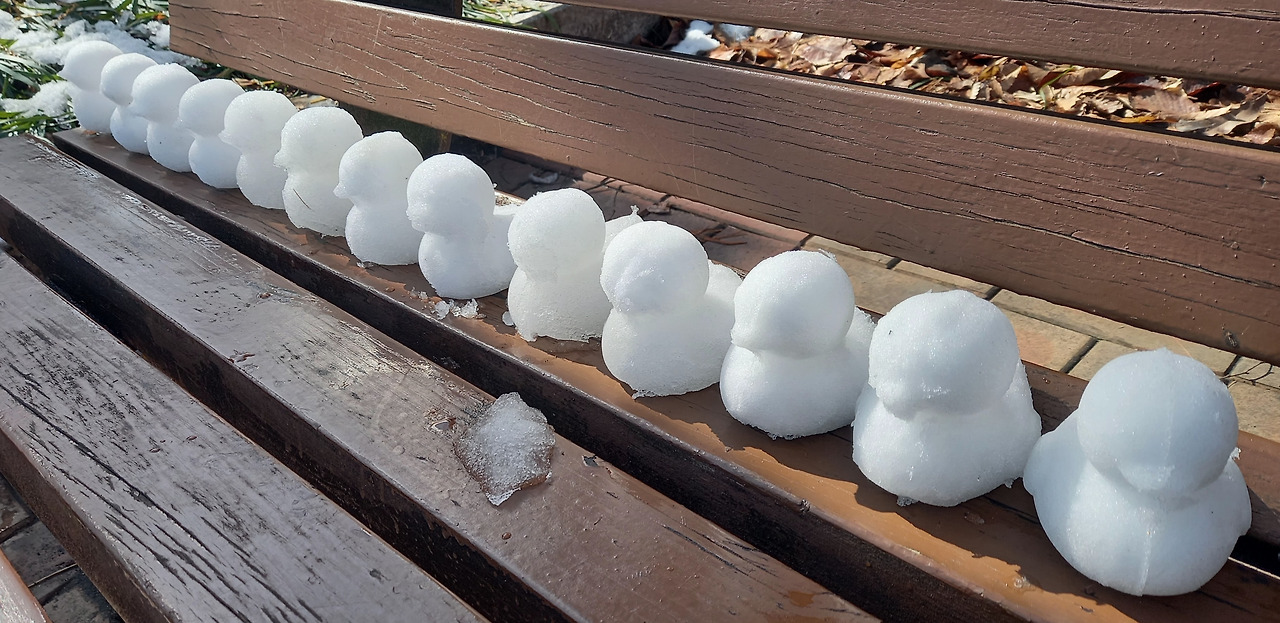 집에 놀러 온 조카손주와 눈으로 오리 만드는 집게를 들고 놀이터로 나갔다.