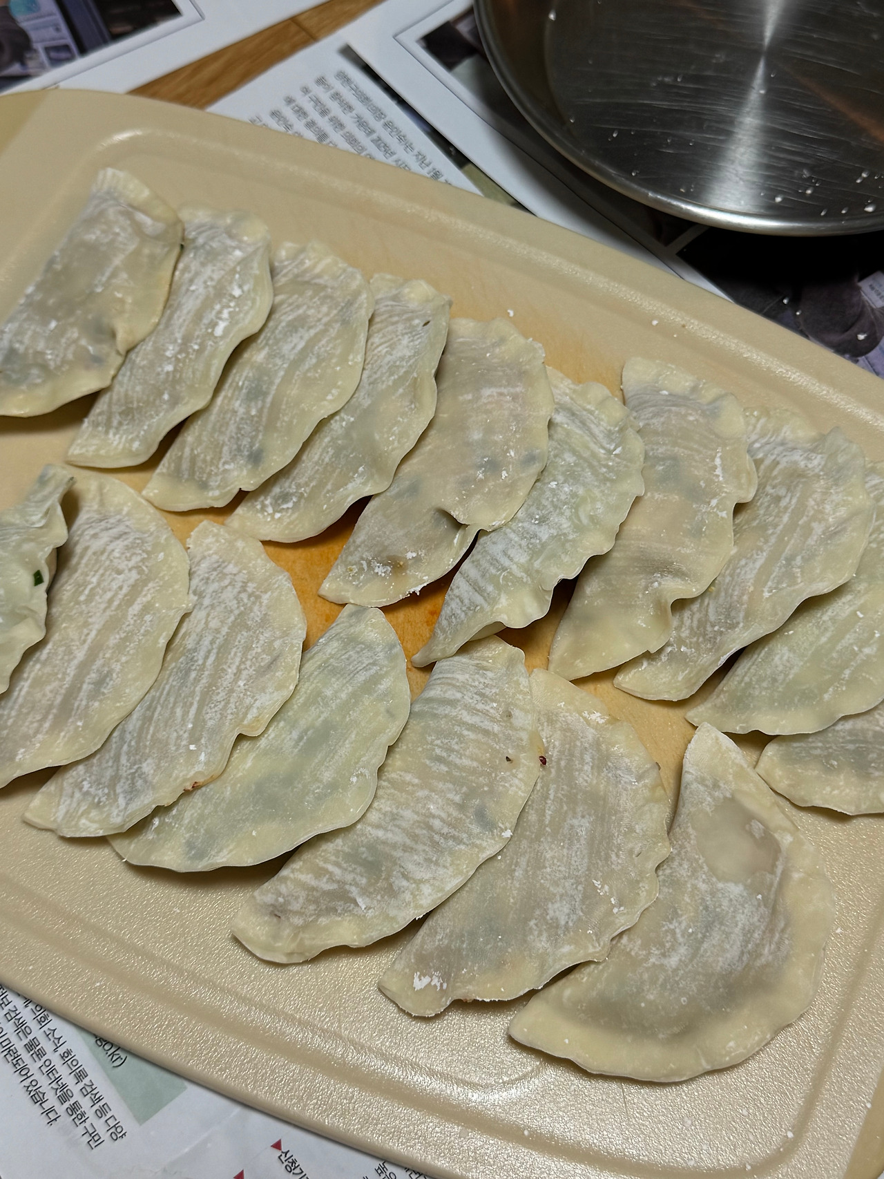 막내는 빚어놓은 만두가 맘에 안 드는지